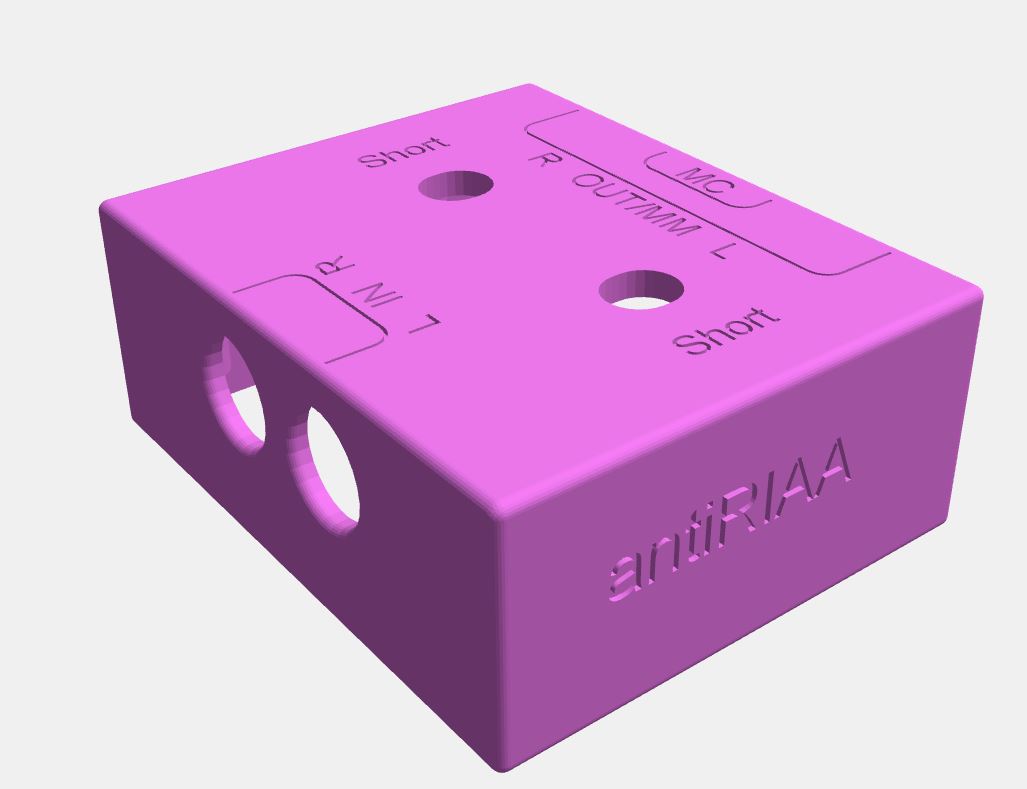 Конкретно надпись Short сейчас размещена не в верном месте: их должно быть две, как раз с другой стороны от отверстий для тумблеров. Если смотреть на второй рисунок (где видна надпись Short), то я бы написал antiRiaa на верхней и нижней гранях (нижняя линия надписи - к открытой стороне).