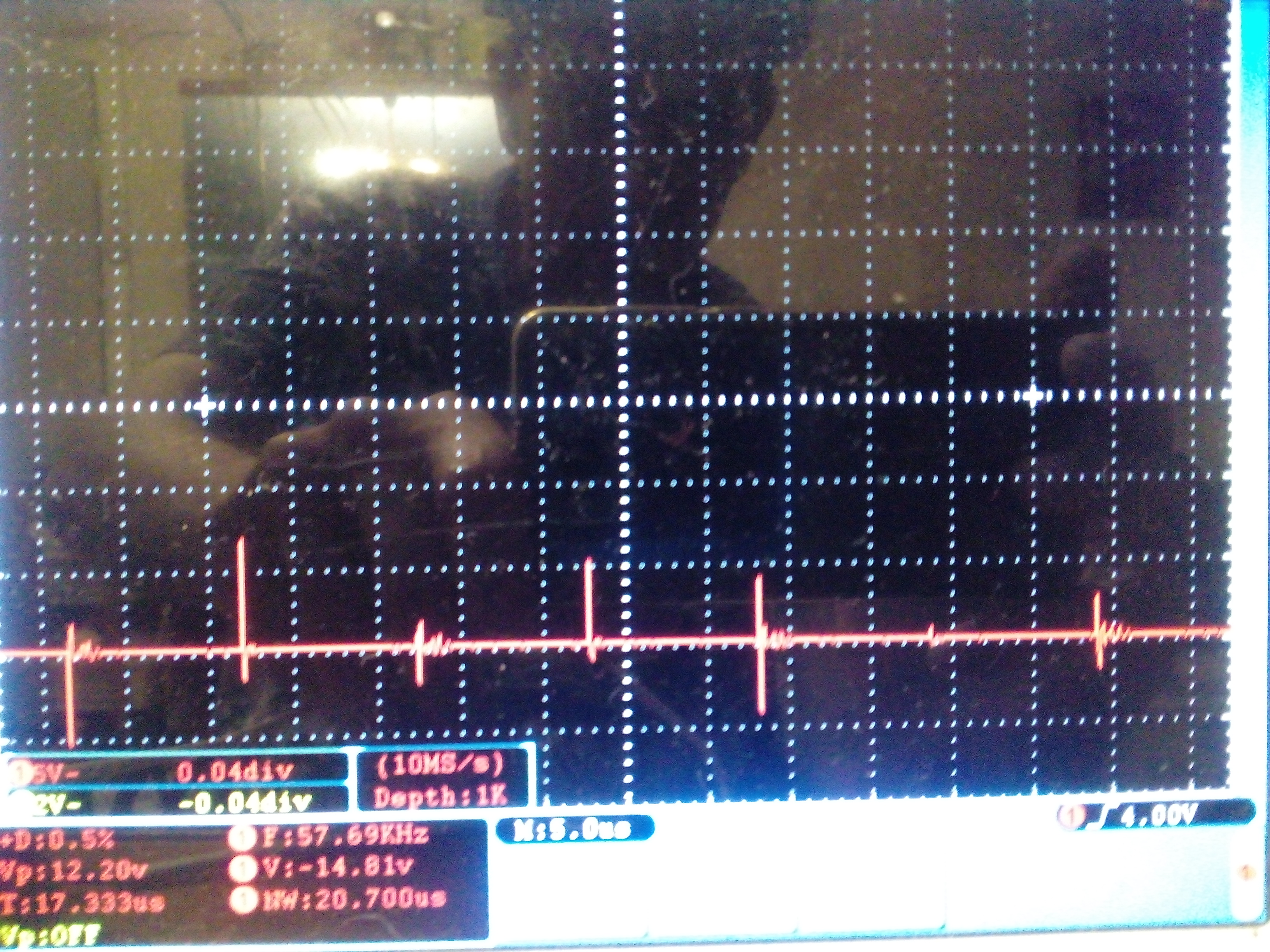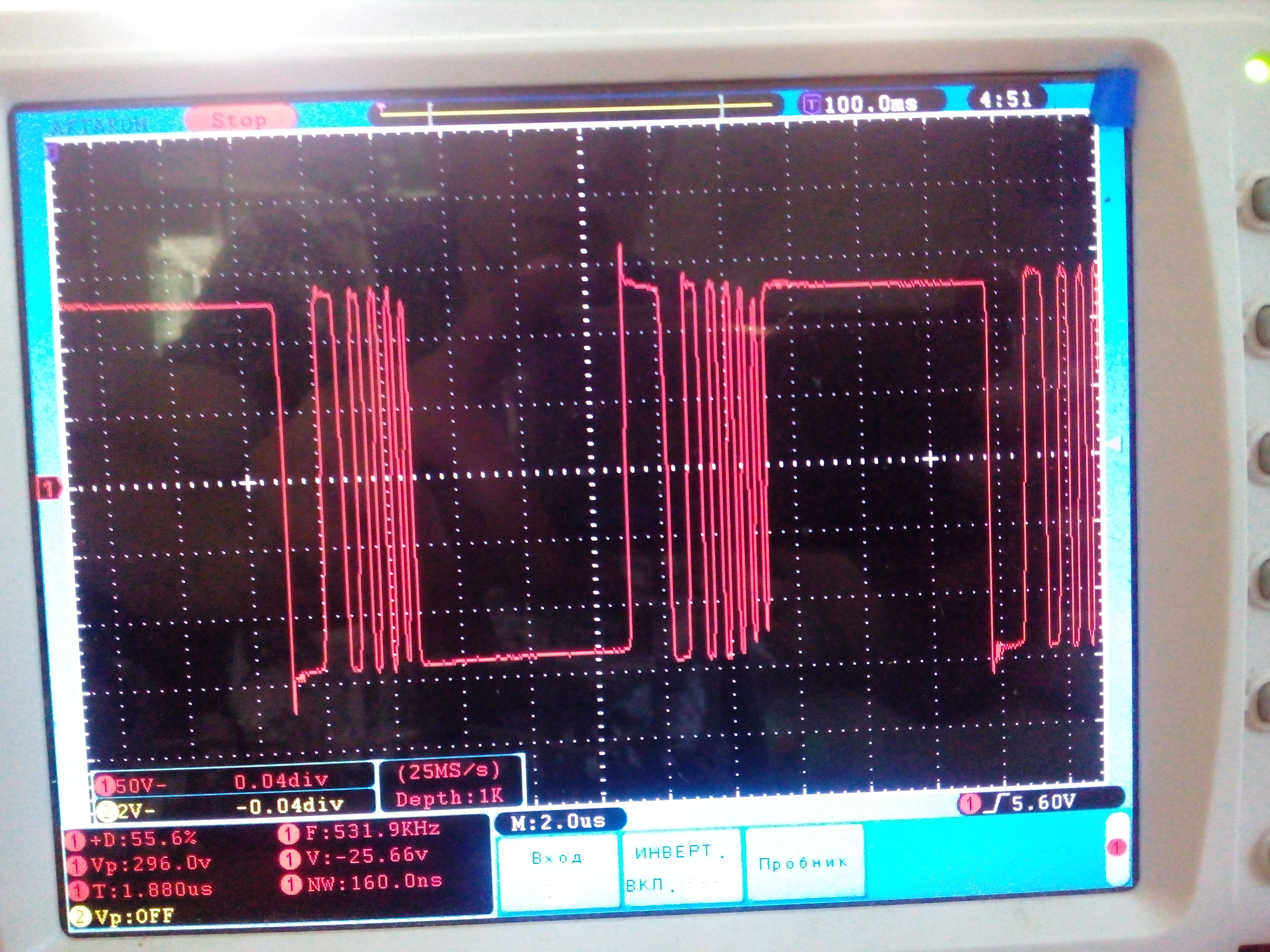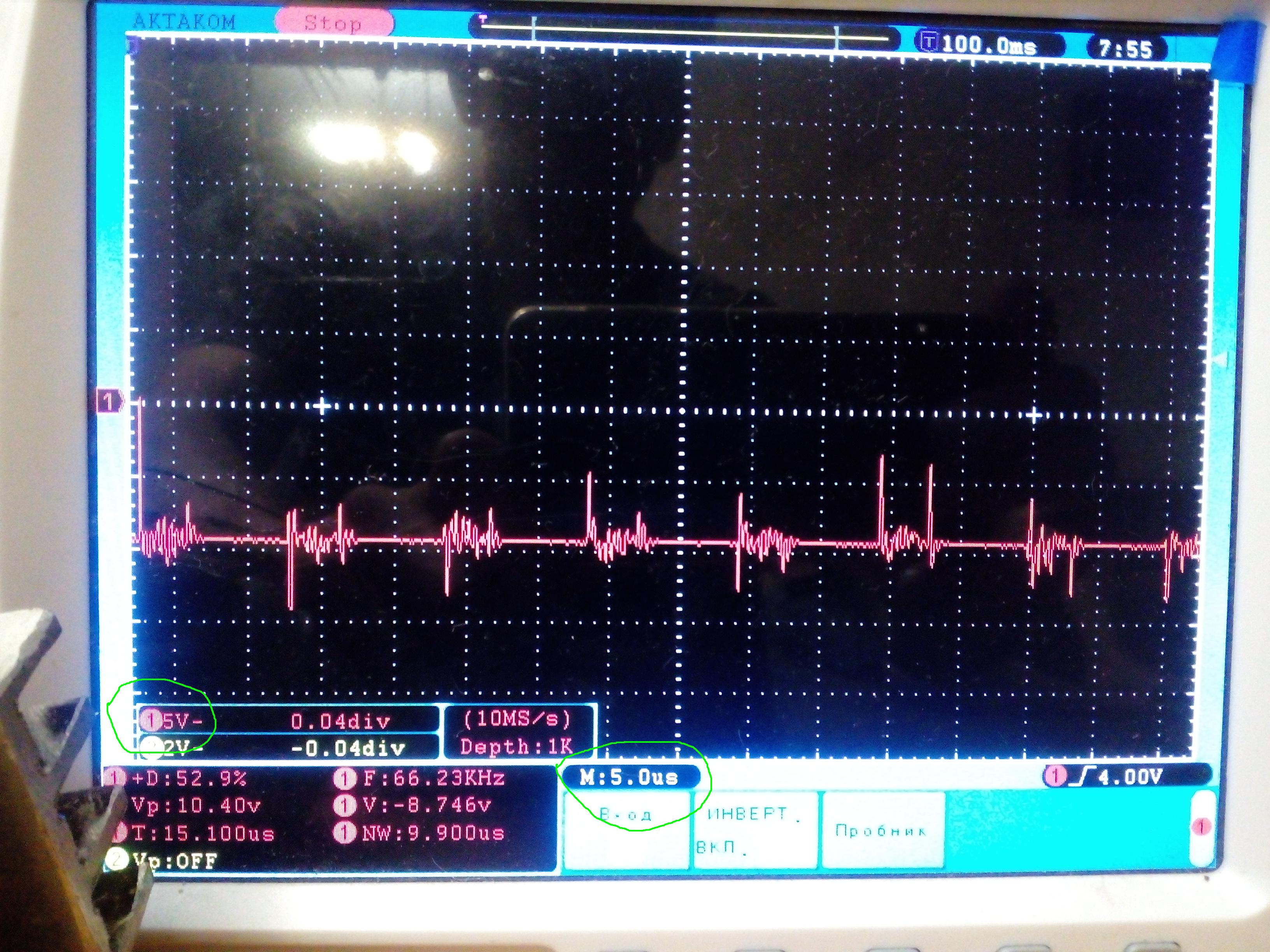 Ребята. Беру тайм-аут. Все перепуталось в голове и снимков насобирал слишком. Не помню какой откуда. А цена делений на экране осцила показывается. Последний снимок там 50 вольт на деление и развертка 2мкс на деление. На фото эти цифры внизу слева и внизу в центре, обвел зеленым. Poty. если это не коснется личных интересов, назовите Ваше имя, хоть вымышленное. Коробит как-то общаться с человеком при помощи интернет-кликухи.