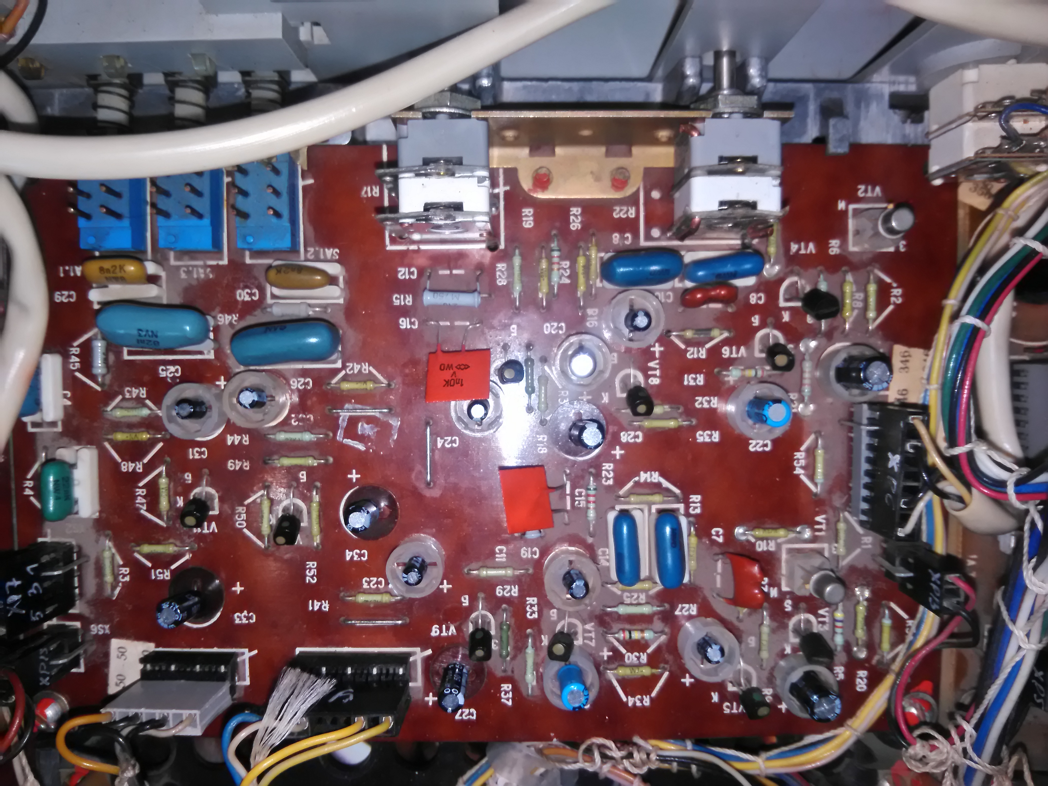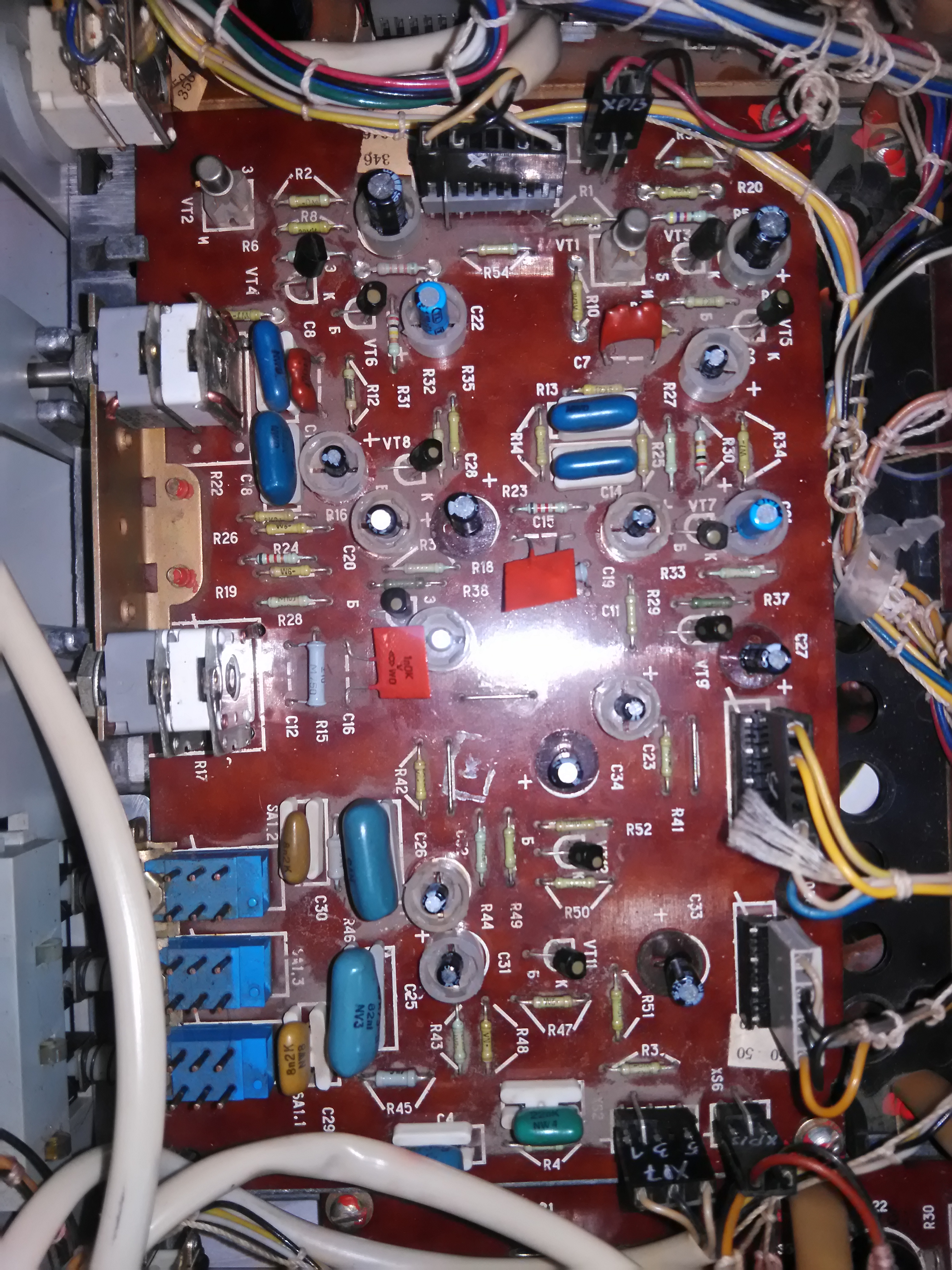 3. Переменные резисторы регулировки тембра стоят вне платы или впаяны в неё? Можете сфотографировать внутренности с упором на плату предварительного усилителя и выложить фото сюда?