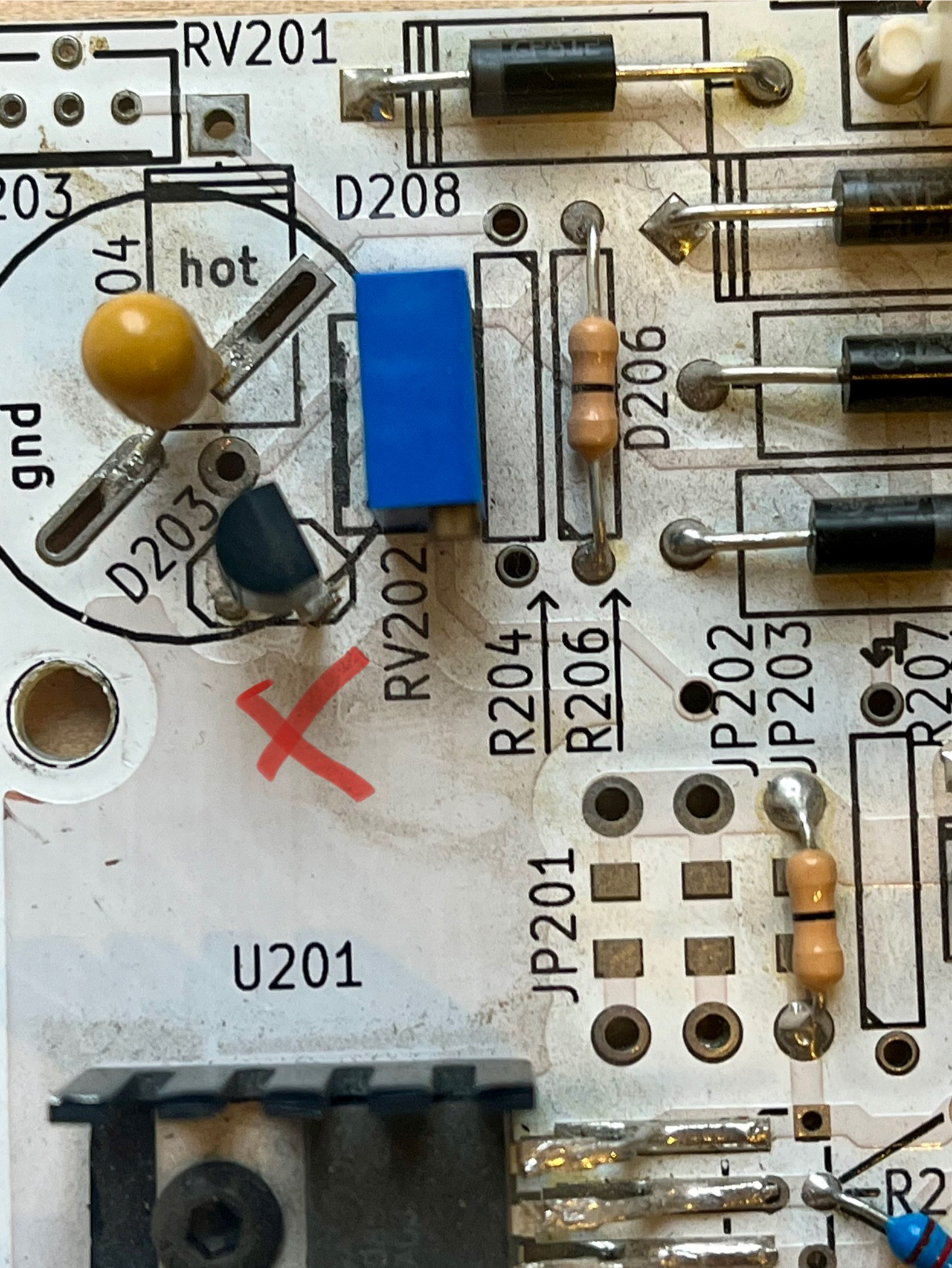 В итоге, разгадав ребус, я понял - нужно новую деталь впаять так же, как стояла старая.