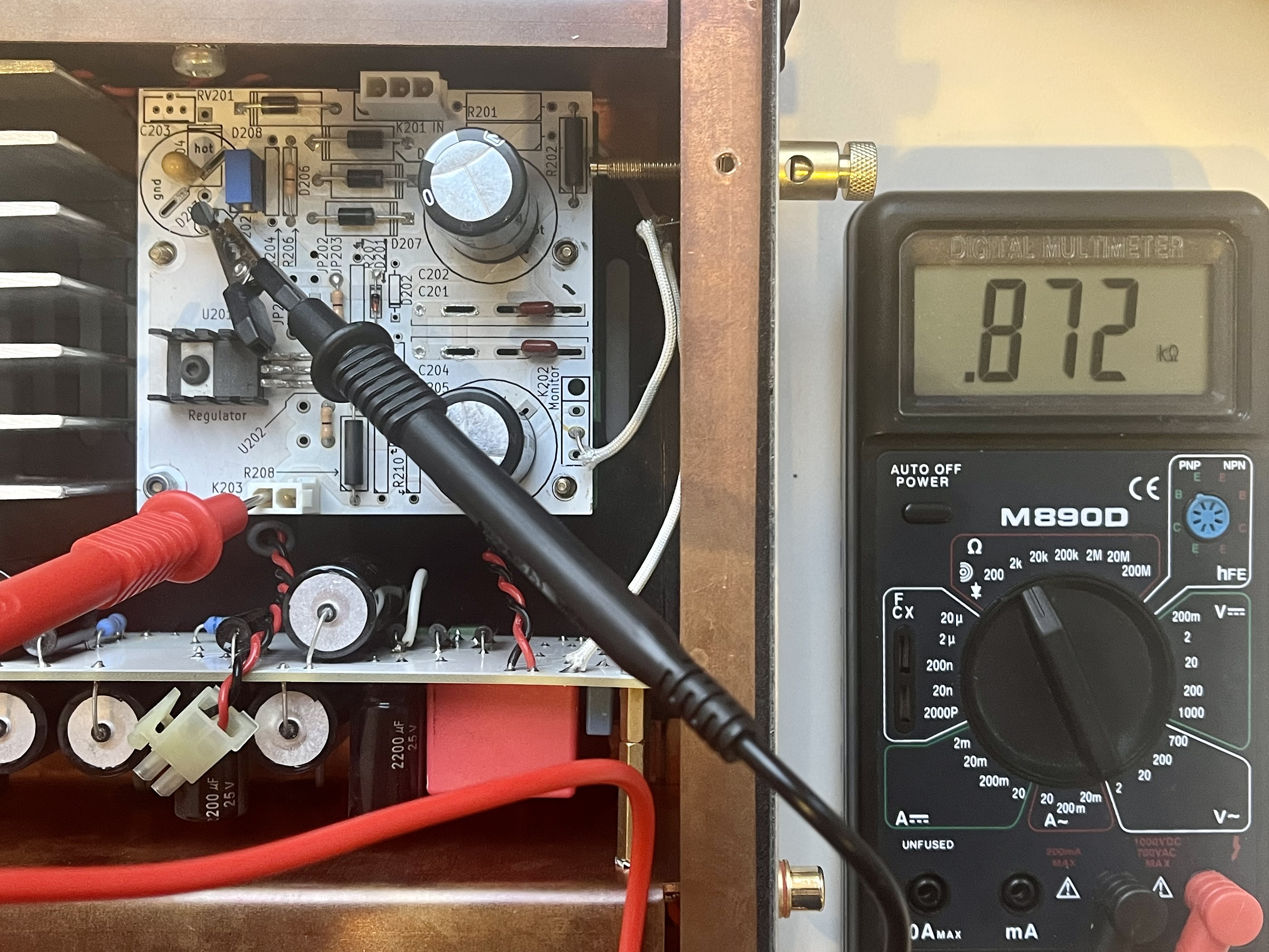 Сопротивление то поднималось выше 1,3 кОм, то начало опускаться... в итоге остановилось на 0,872 кОм и не меняется уже несколько минут.