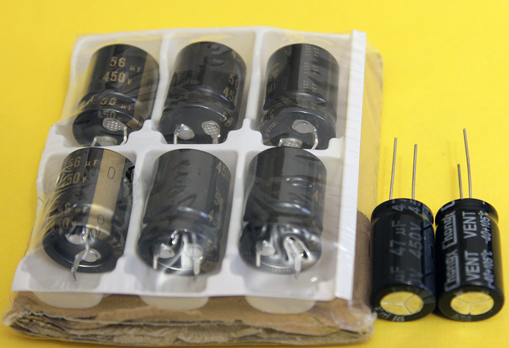 Ламповые панельки есть. Конденсаторы С203, С204, С207 в БП накала (Nippon 3300uF 25V) и СС103, СС104 на плату усиления (Samwha 1000uF 16V).