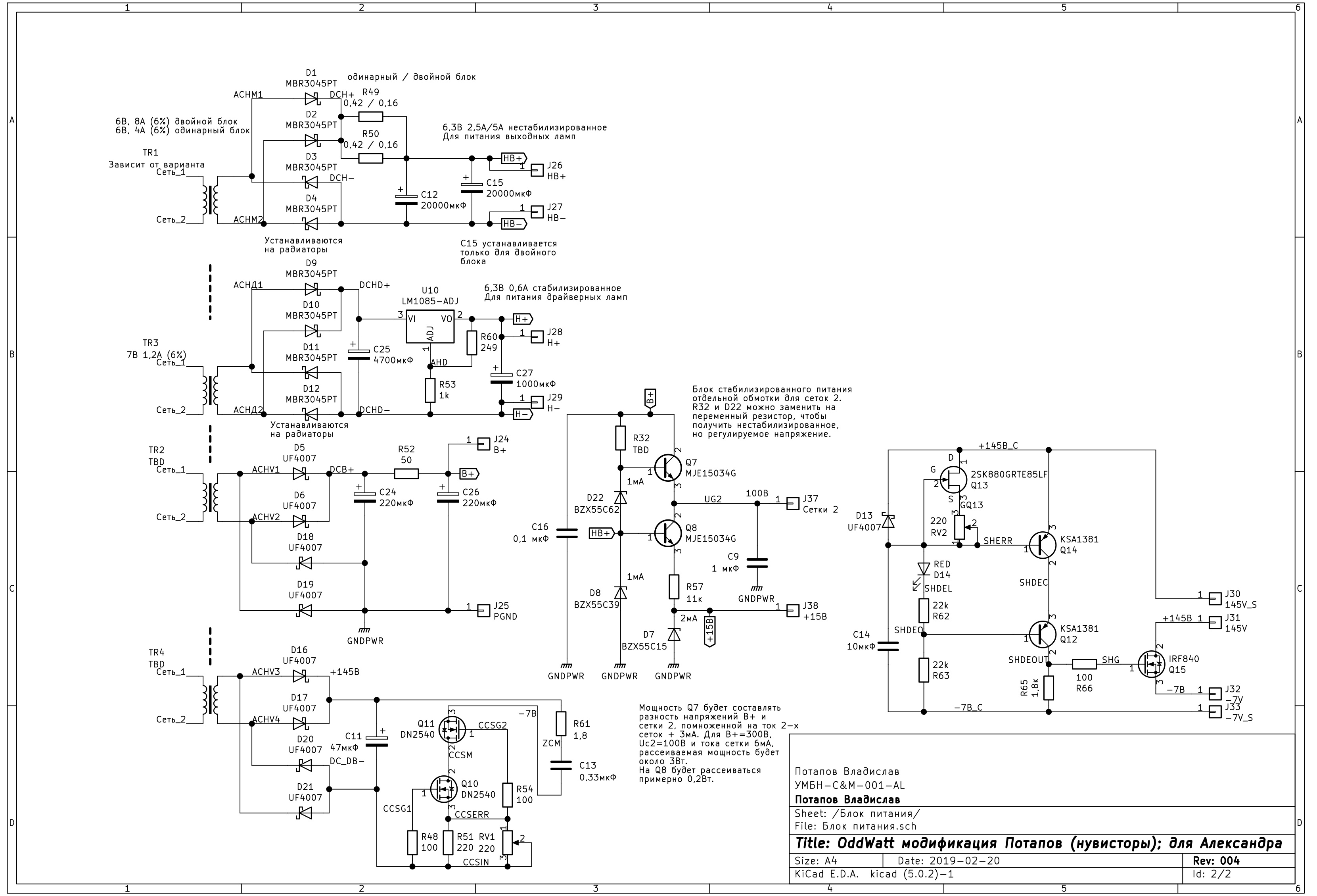 - питание цепей (НВ+ и +15В) на резистор R56 (to be determined) возможно взять от сюда (с питания вторых сеток) или как в "первоистоке" от питания драйвера.