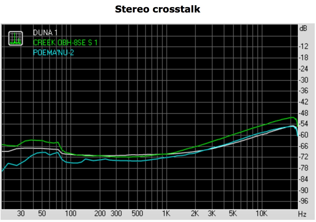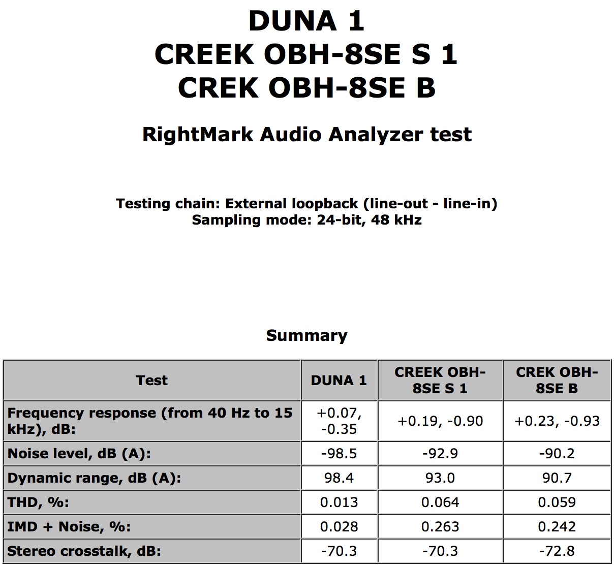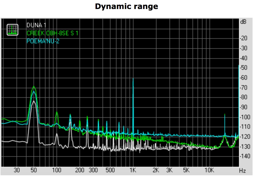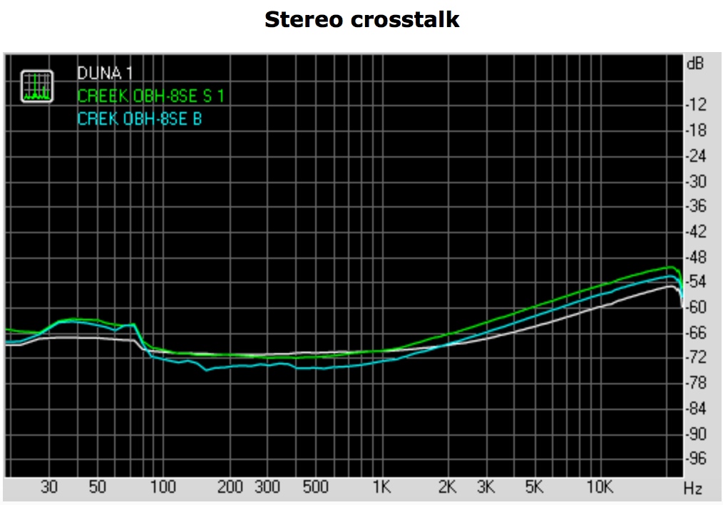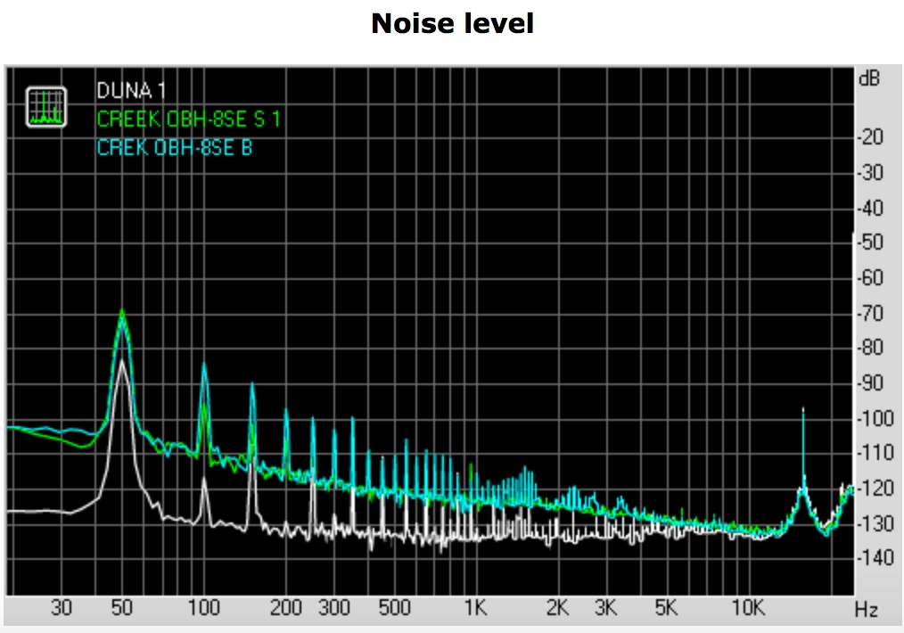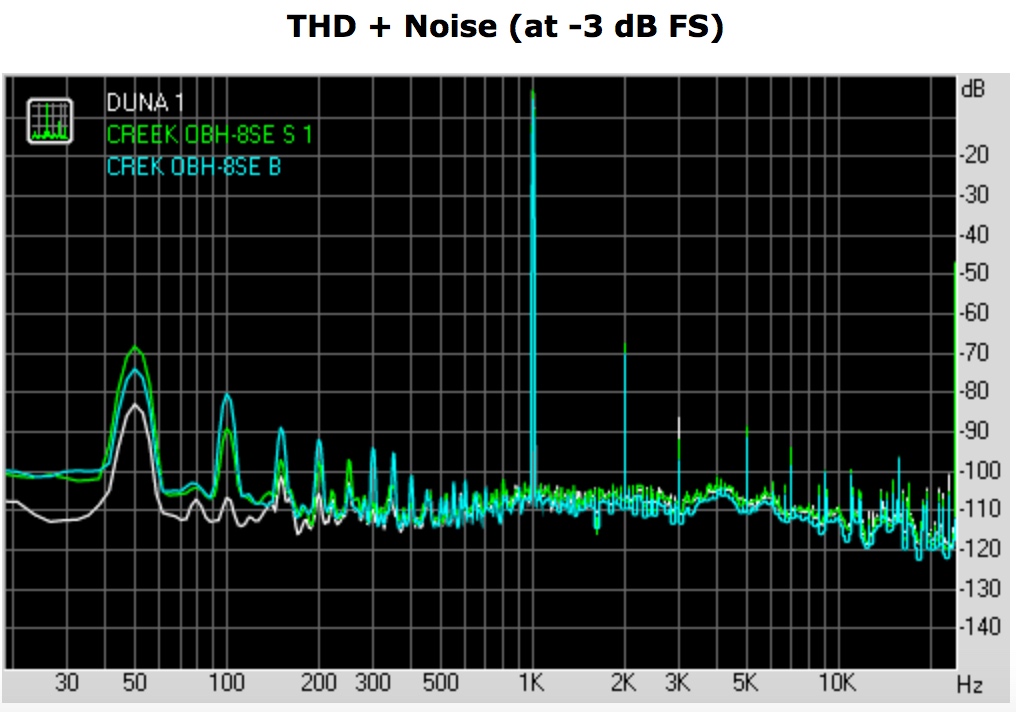 Для сравнения я выбрал тест серебристого фонокорректор CREEK. Он получился при сопоставимом уровне тестового сигнала. Все тесты проведены сигналом с медиаплеера.