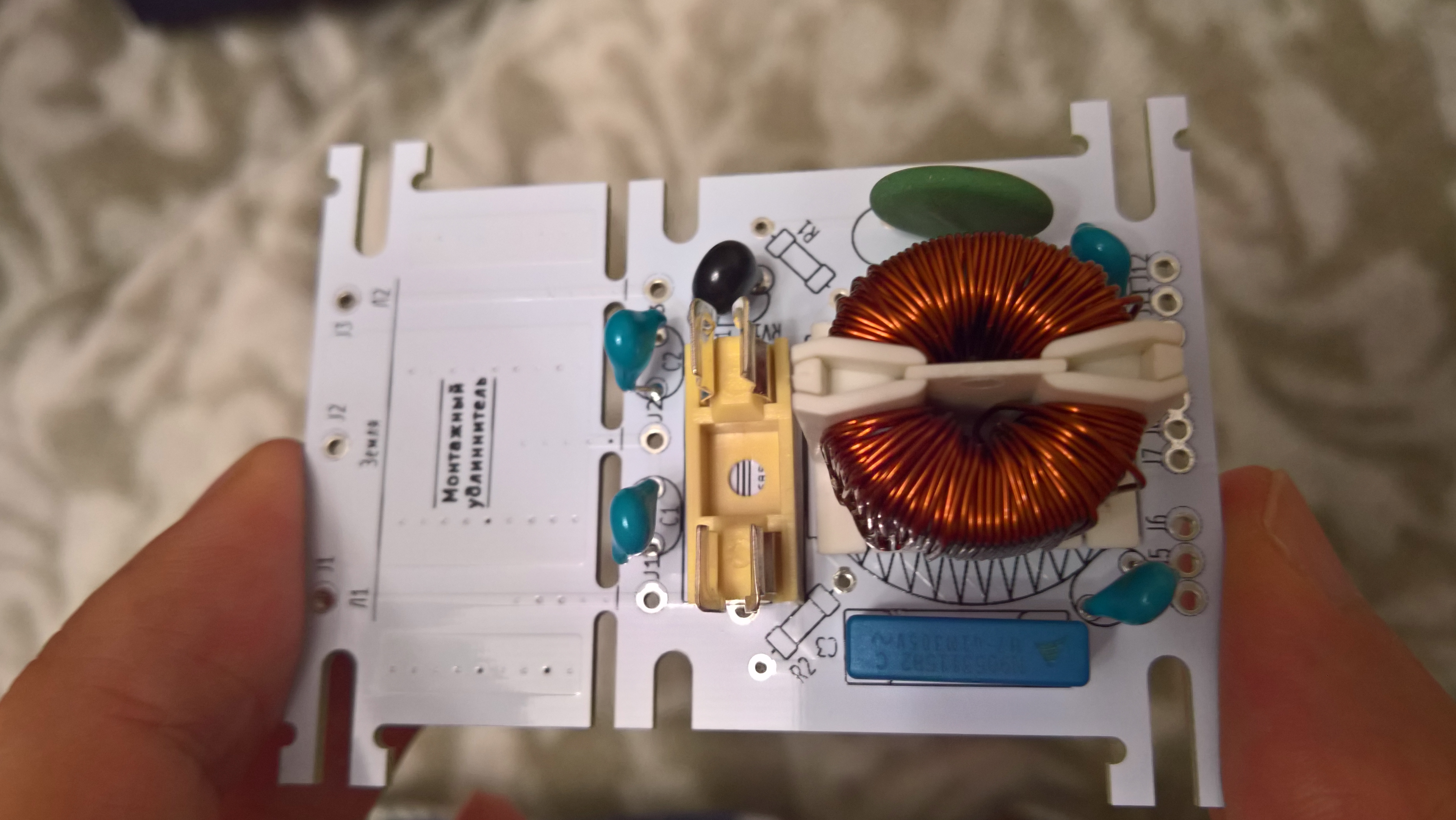 7. На платах присутствуют искрогасящие цепи для выключателя. Если выключатель не используется (например, фильтр встраивается в существующий аппарат с имеющимся выключателем), эти детали можно не запаивать. Речь идёт о:
