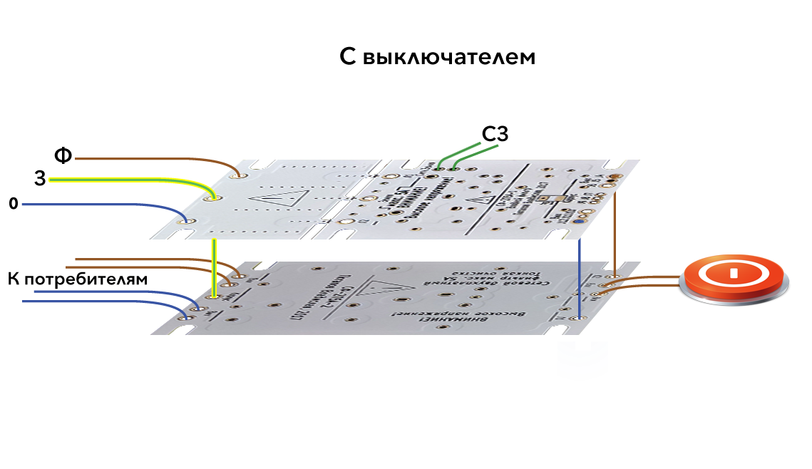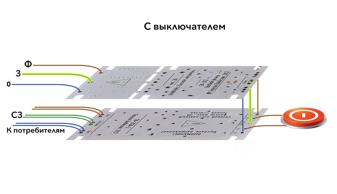 - соединить через изолятор определённого вида (может комбинироваться из диодного моста, резистора и конденсатора); в этом случае используются только нужные элементы изолятора, а также обязательно соединение защитной земли с платой(-ами) 2А выходной фильтр.