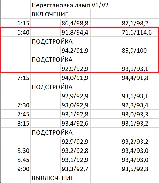Я сделаю пару сессий замеров в таком положении ламп. Потом заменю на правом моноблоке (где яркая лампа) лампы на пару из первого комплекта, к которой нет до сих пор замечаний.