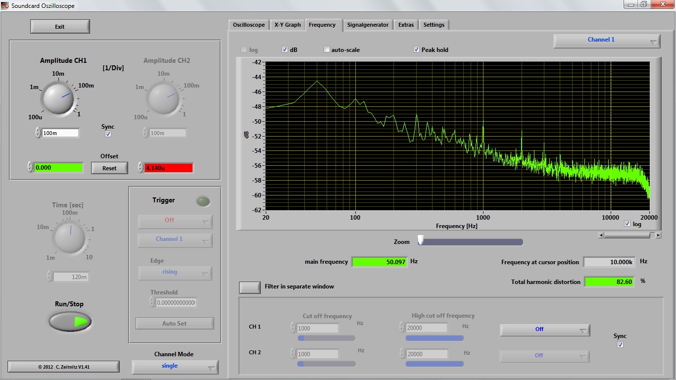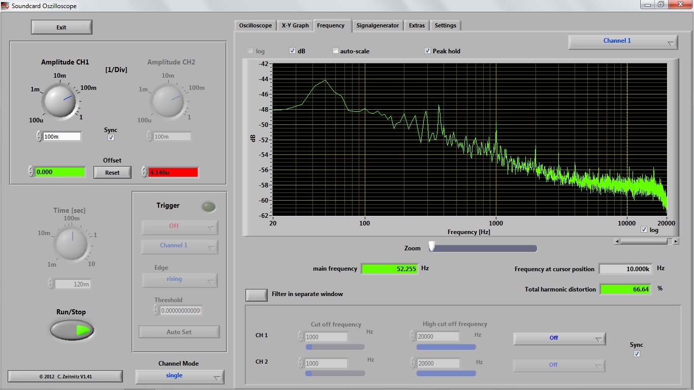 1) Земля в розетку, Gain 0 dB.