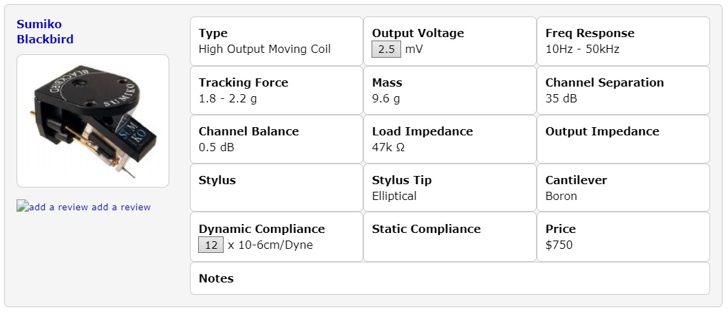Все, что мне известно про картридж - это фирма SUMIKO и есть несколько фотографий по вышеприведенным ссылкам. Если есть возможность понять, какой для этого картриджа оптимальный импеданс, я буду признателен.