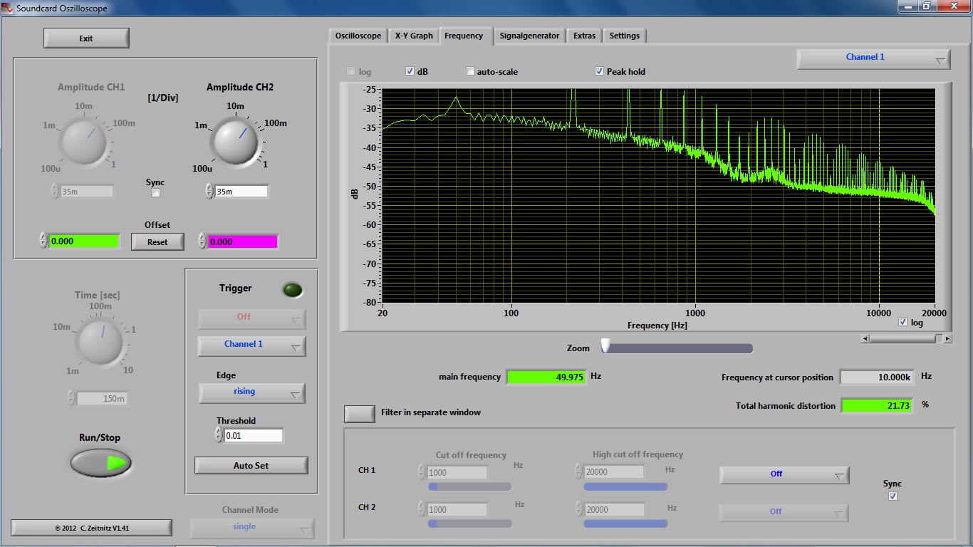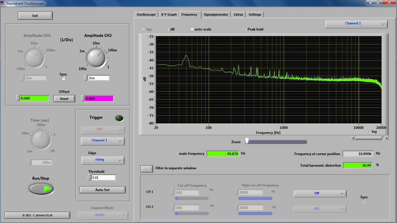 Да, забавно. Для меня это пока лишь картинки. Сам я их только учусь читать. Интересно, что я мог ведь сделать и по логарифмической шкале. Просто я пока этого всего не понимаю. Эти графики сделал, потому что мог сделать. Сам больше на показания шумомера ориентировался.poty писал(а):Теперь по графикам. Выглядят они несколько занятно для меня, потому что я привык к логарифмической шкале частот, но самое главное, что они в принципе есть.