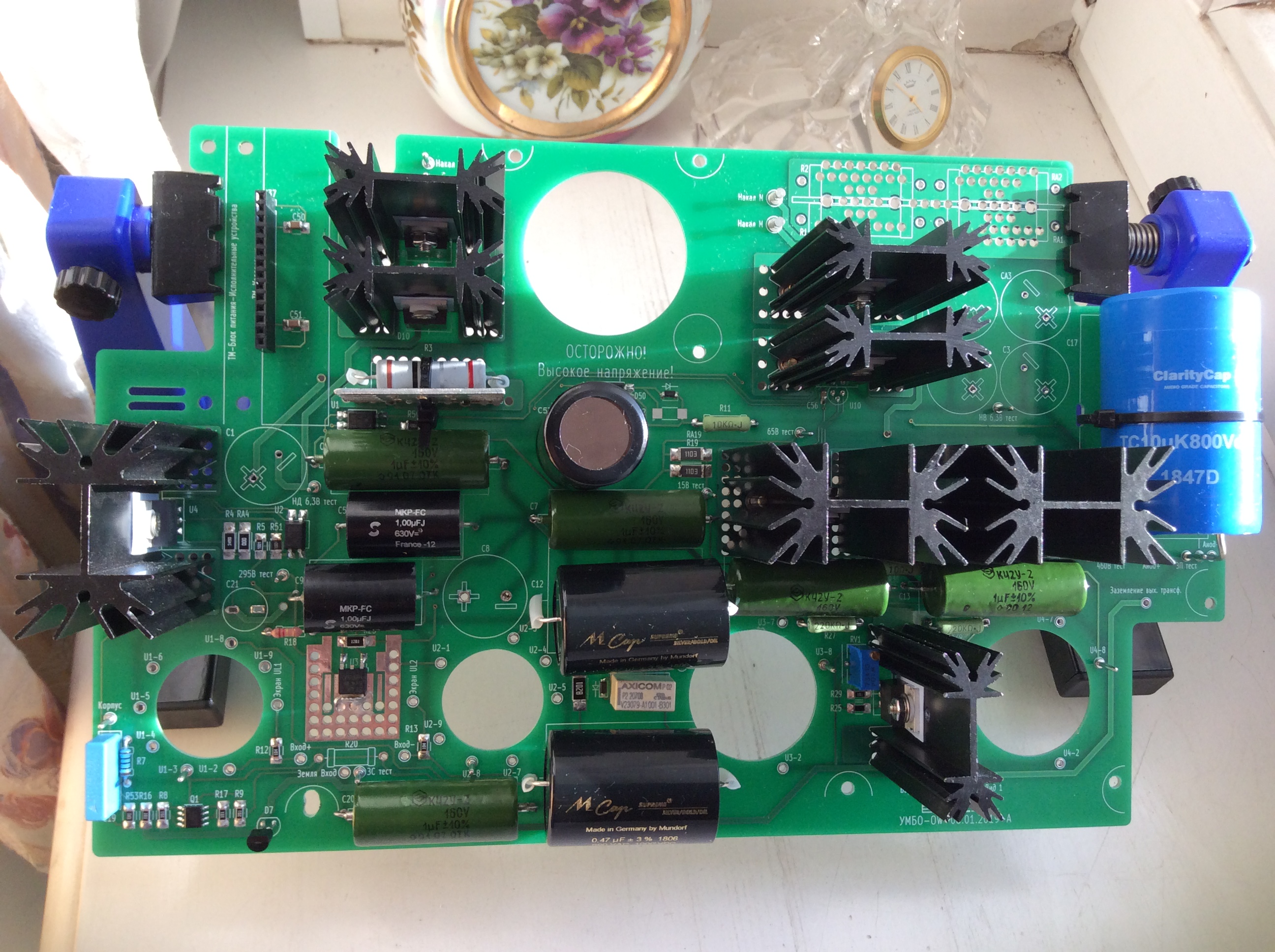 После прогрева усилителей (примерно 0,5часа) нужно будет заново померить напряжения на R25, R26 и выставить нужные значения.