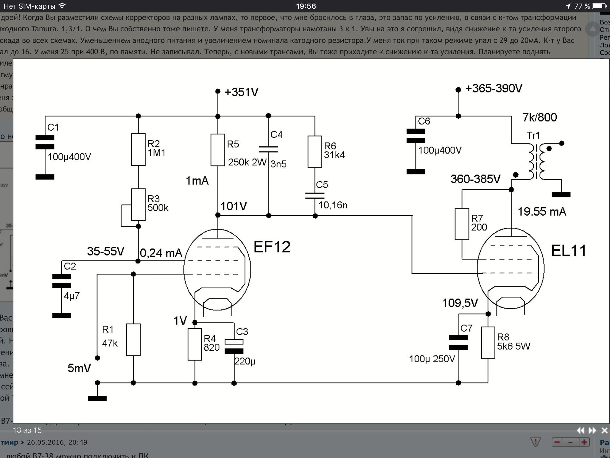 seurf писал(а):После кенотрона стоит конденсатор 50 мкф, мощный стабилизатор на IRF840, опять конденсатор 50 мкф, далее с платы стабилизатора четырехпроводным соединением идёт линия из блока питания по жгуту в корпус корректора. Там питание попадает на выходную лампу EL11 и на следующий стабилизатор на LR8 на входную лампу EF12.