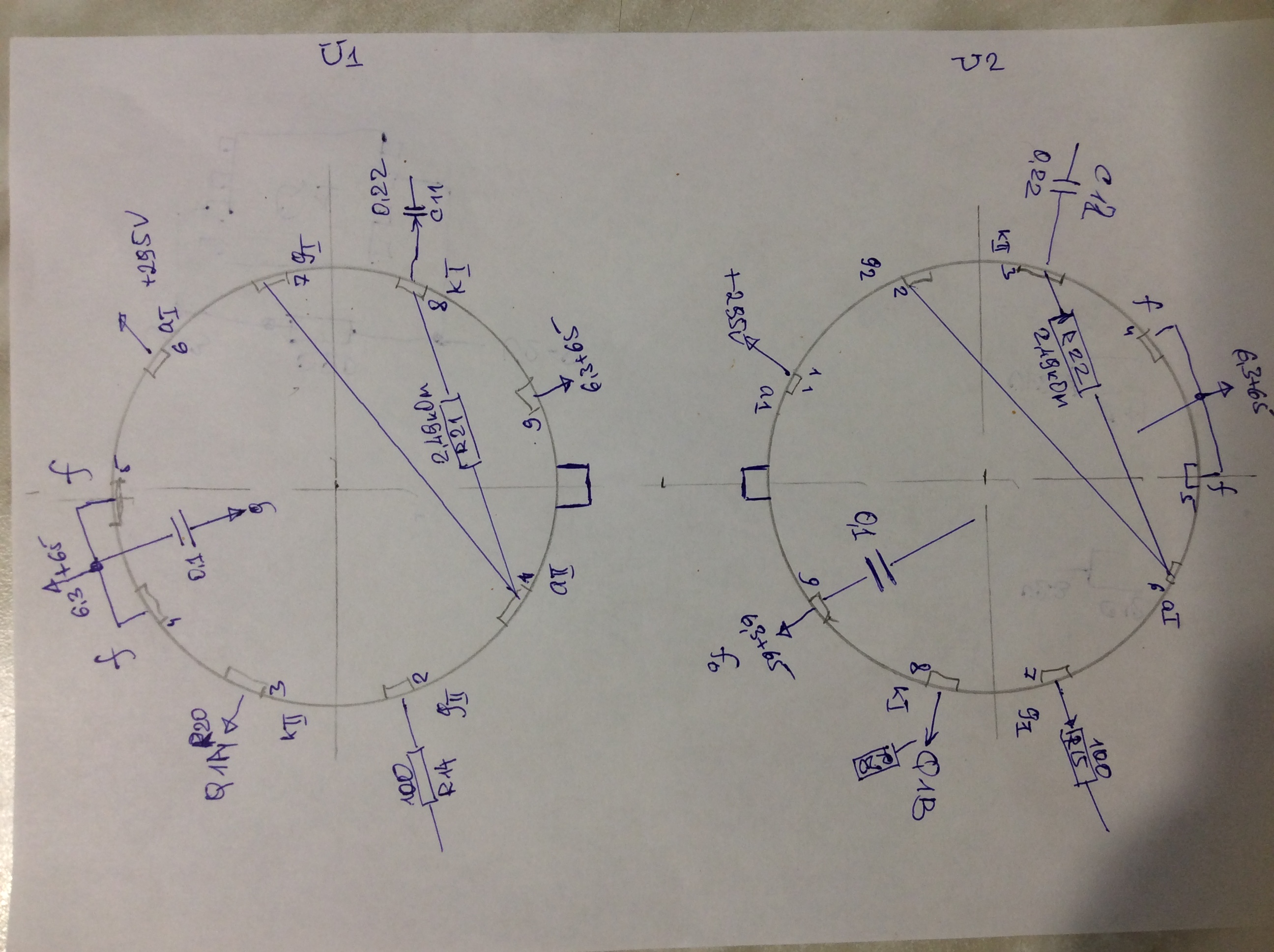 U1 - 1 пин ( анод)- 129В ; 8 пин ( катод, выход на С11) -132,2В
