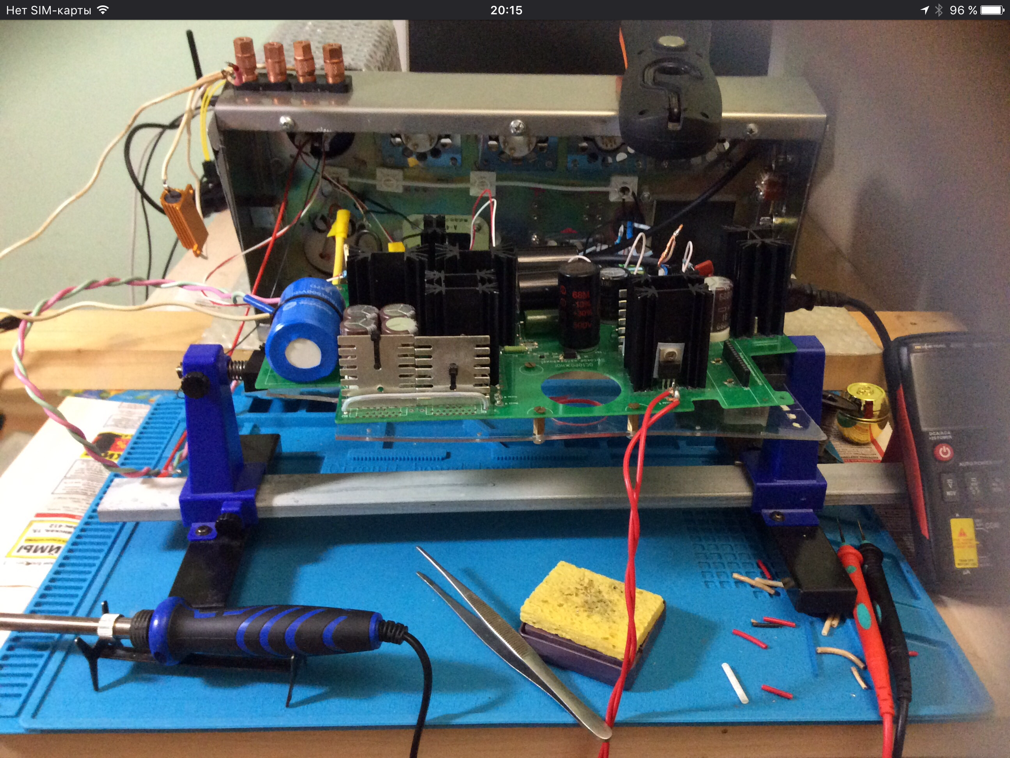 Переделал. Поставил. Запустил. Запустилось. Один тестер на накале-6,2 В. Второй на анодке. Сначала, как удав на лягушку смотрел на тестеры. Потом на анодке тестер отключил, только за наскальным наблюдал. Он автоматически отключается. Батарейку экономит. Я включаю.