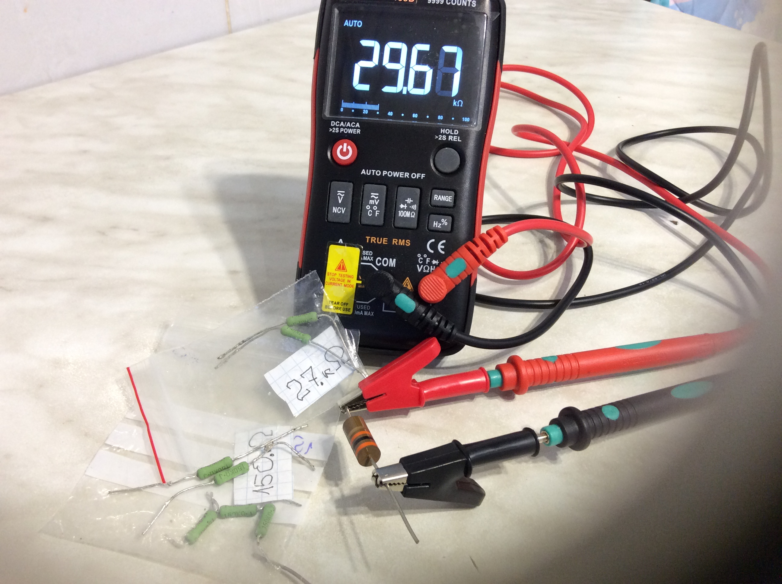 Варисторы, закупленные для этого случая в ЧипДип, я нашёл. Они под рукой. И мне стали понятны мои трепыхания, когда я Варистор лепил последовательно с анодкой. Используемый пакетик с новыми, не используемыми варисторами, тоже ( как стабилизатор накала) сыграл со мной в лотерею, тоже не в мою пользу. Новый Варистор имел сопротивление 30 Ом и коротил анодку. Вот, от безысходности, я и влепил его последовательно, хотя до этого посмотрел видео о практике использования оных и знал, что ставить надо параллельно. но что делать с КЗ от нового Варистора, я не смог тогда придумать ничего лучшего!