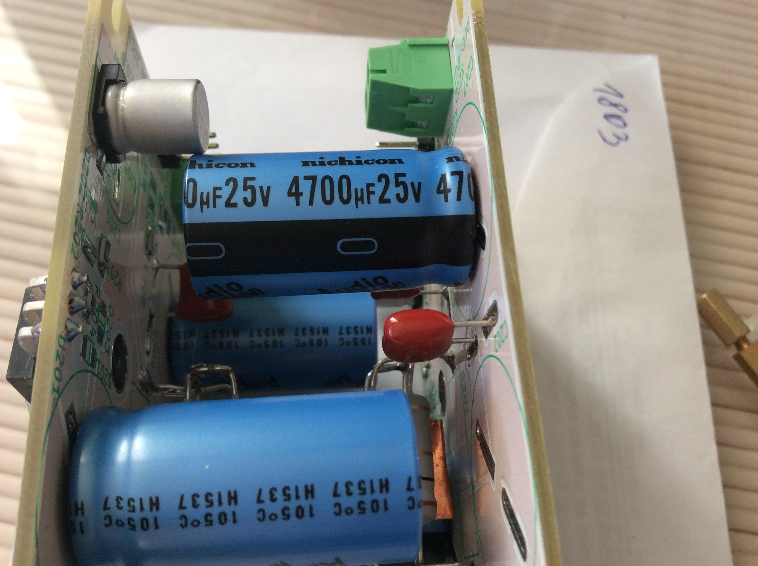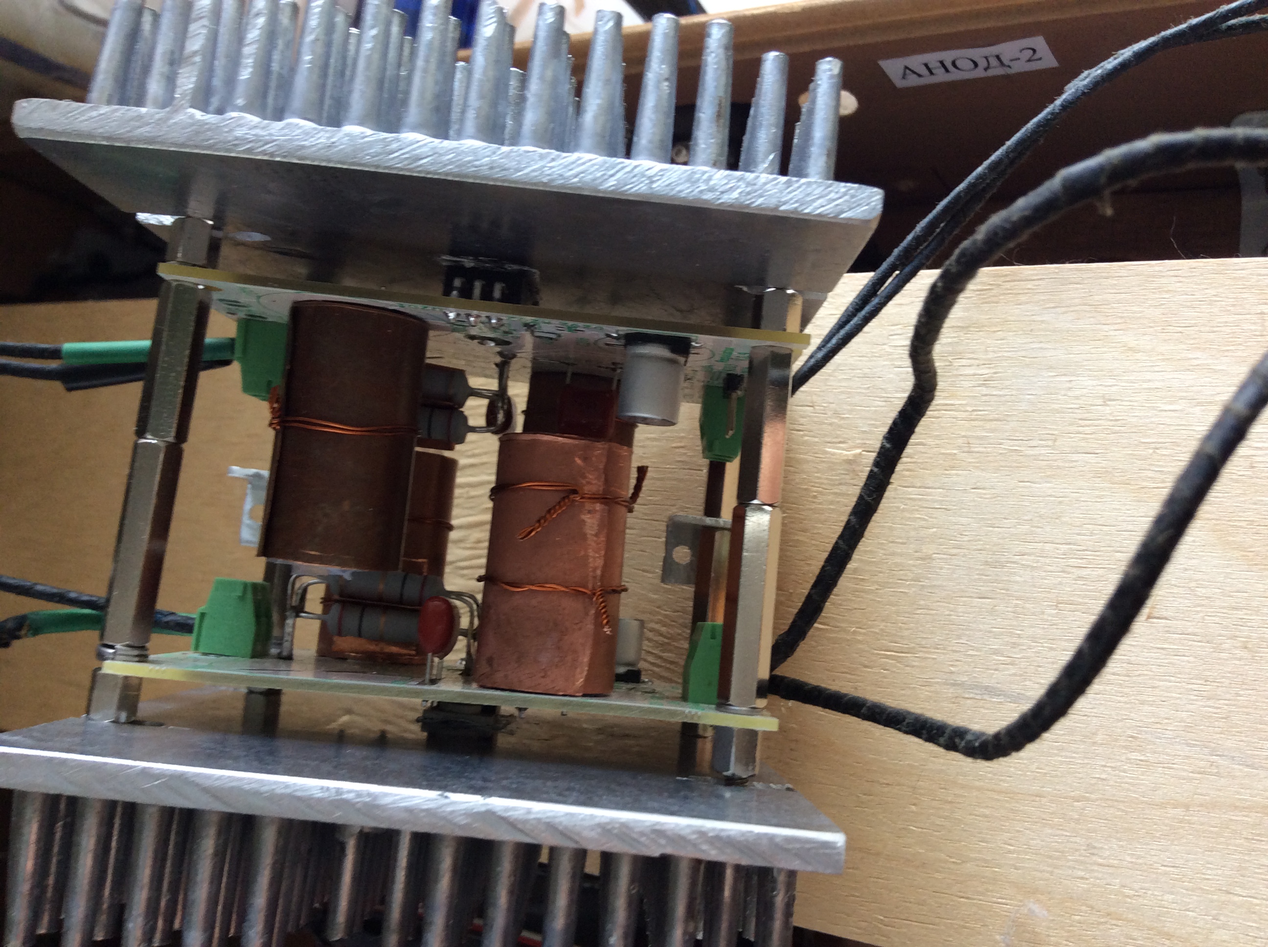 Пардон, совсем пропал. Собрал пару ежиков. По размерам подогнал диодный выпрямитель в подвал ( расчистил там площадку), стабилизатор напряжения на верх. Его чуть чуть лучше восходящие потоки тёплого воздуха ( конвекция) охлаждать будут. Конденсаторы в стабе обернул в два слоя тефлоновой плёнкой и поверх медный цилиндр ( из ленты).