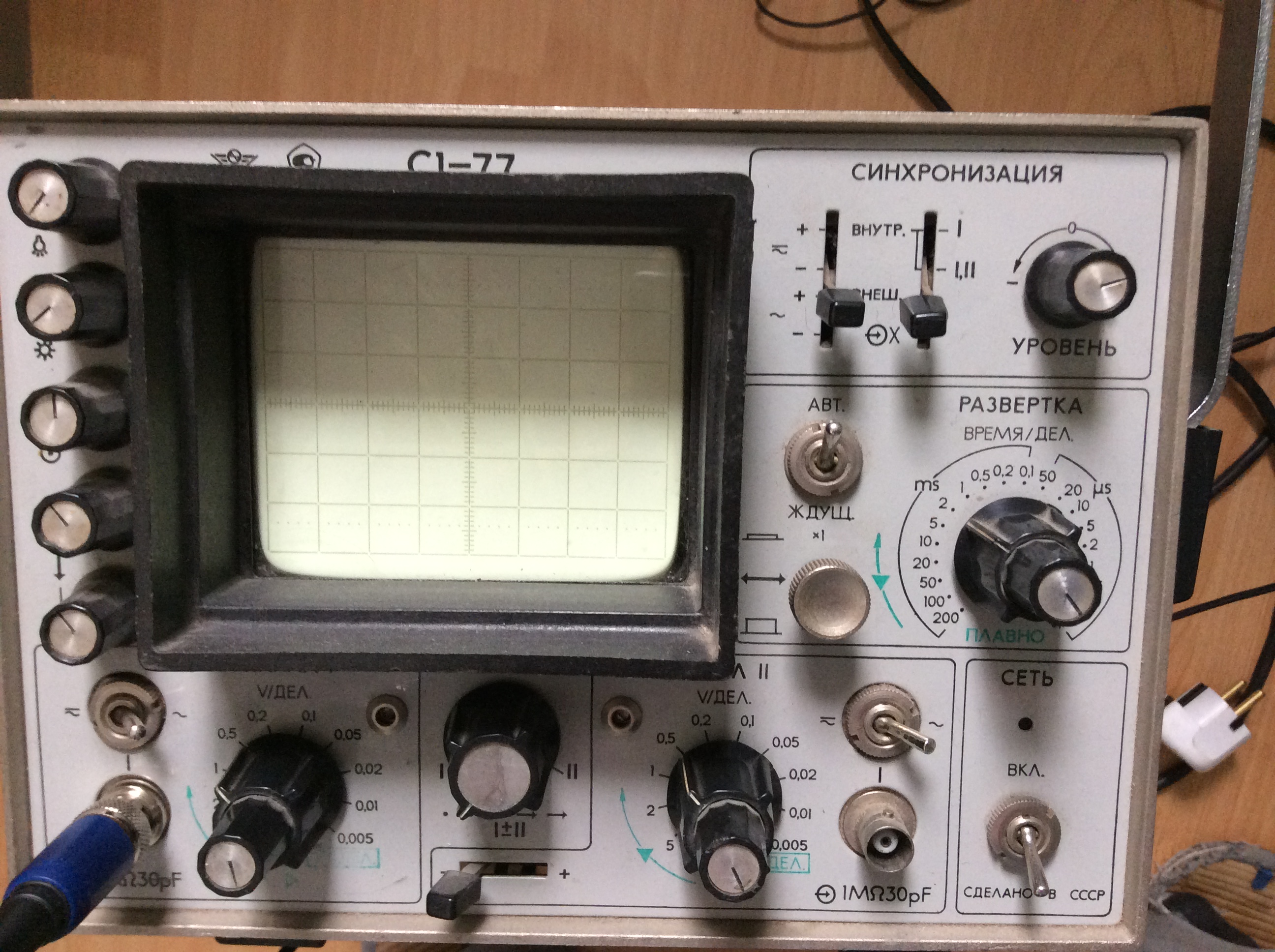 Внешняя синхронизация от сети: не нашёл инструкции в интернете на свой С1-77, как это осуществить. Google спасовал или я. Прибор покупал за 3 руб, естественно без щупов и тем более каких либо паспортов, инструкций.