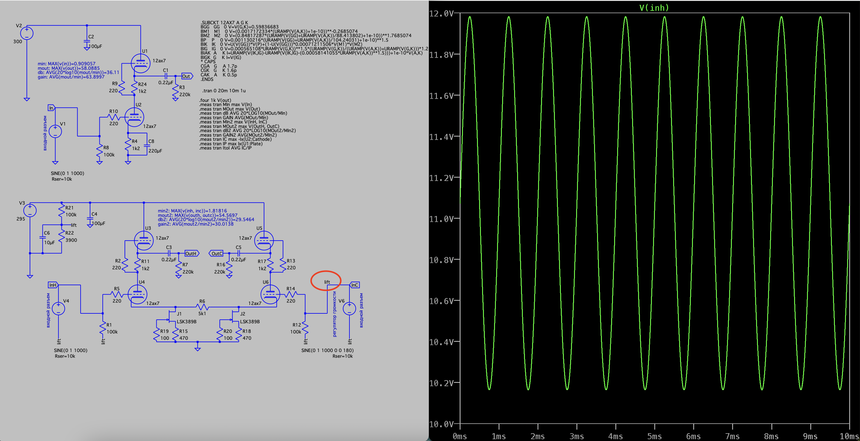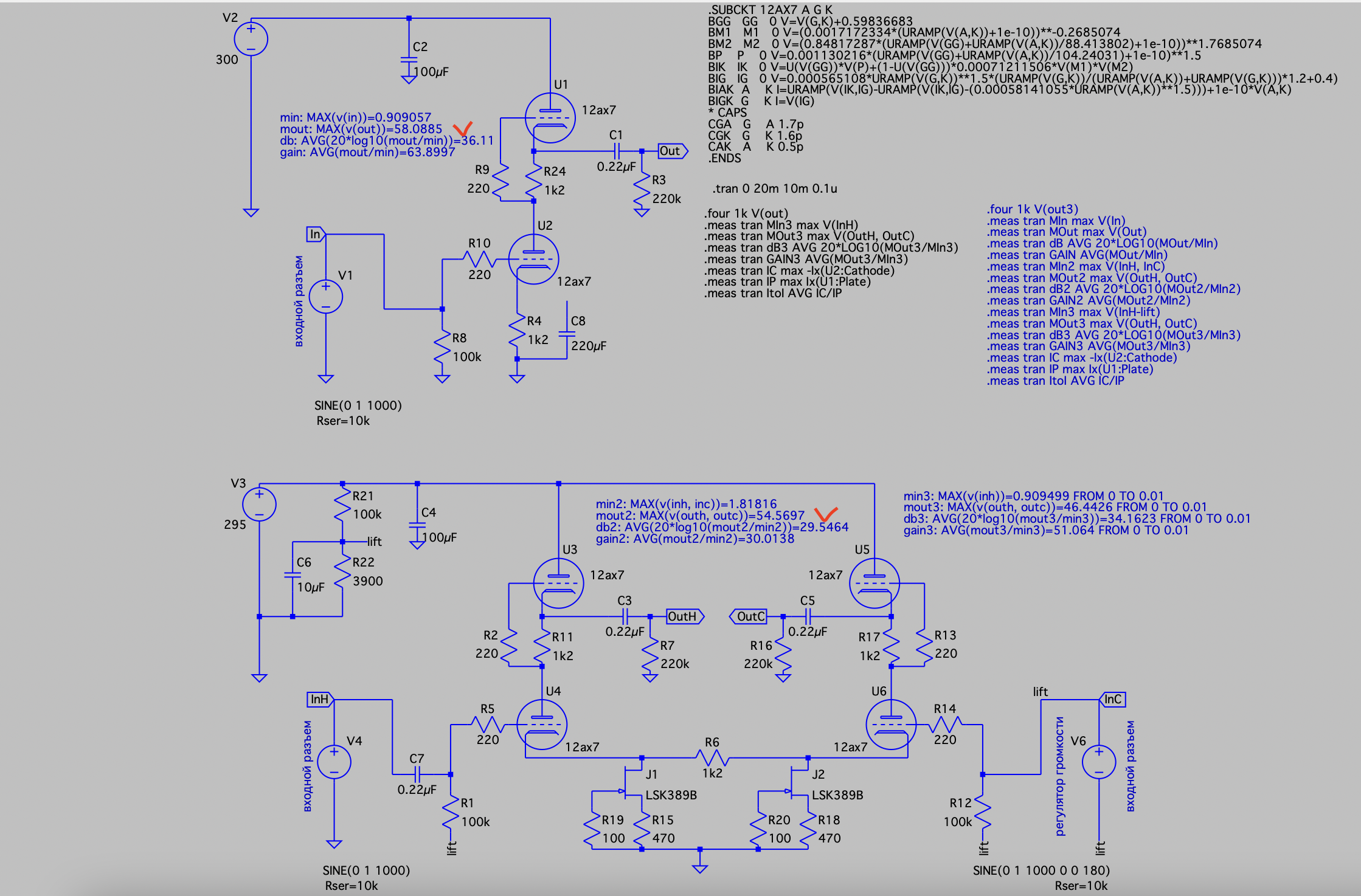 2. Почему такое низкое усиление? Во-первых, почему в формуле mout3 используется только outh? У нас вход небалансный, но выход-то точно балансный! Мы для этого и ставим источники тока в хвостах. Усиление можно повысить уменьшая R6, если нужно.