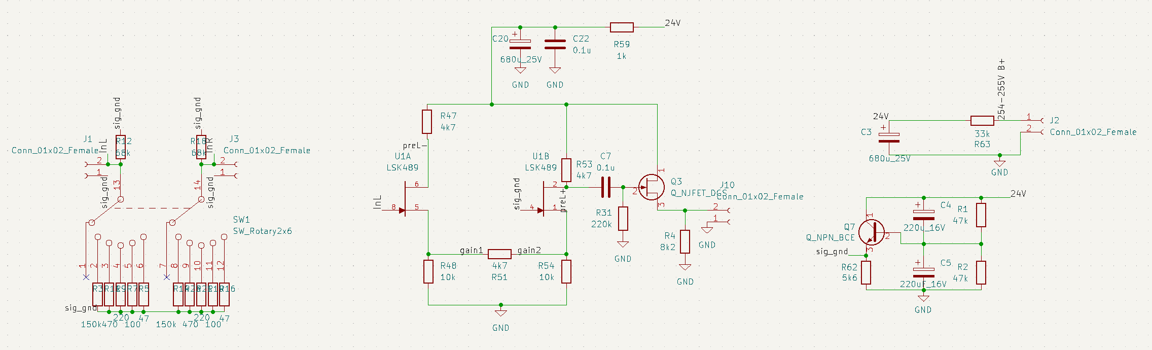 - либо убрать C3, R10, C2, за счёт R3, R6 и увеличенного R26 добиваемся такого смещения J6, чтобы на выходе относительно сигнальной земли был 0.