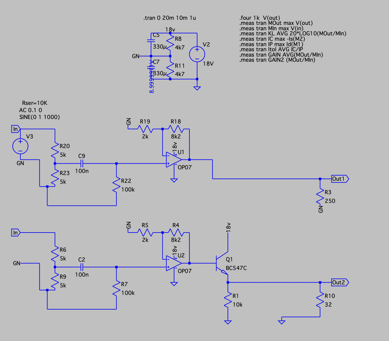 Поясню. Рабочая кривая однотактной схемы в классе А должна быть симметрична. В данном случае - сопротивление 10кОм в эмиттере при 9-0,7=8,3В даёт ток покоя 0,83мА. Увеличивать ток в соответствии с сигналом мы можем практически бесконтрольно, а вот уменьшать относительно тока покоя мы можем только на 0,83мА. Далее транзистор закрывается и... всё. Сигнал на выходе обрезается. Т.е., получаем симметрично около 14мкВт мощности на сопротивлении 40 Ом.
