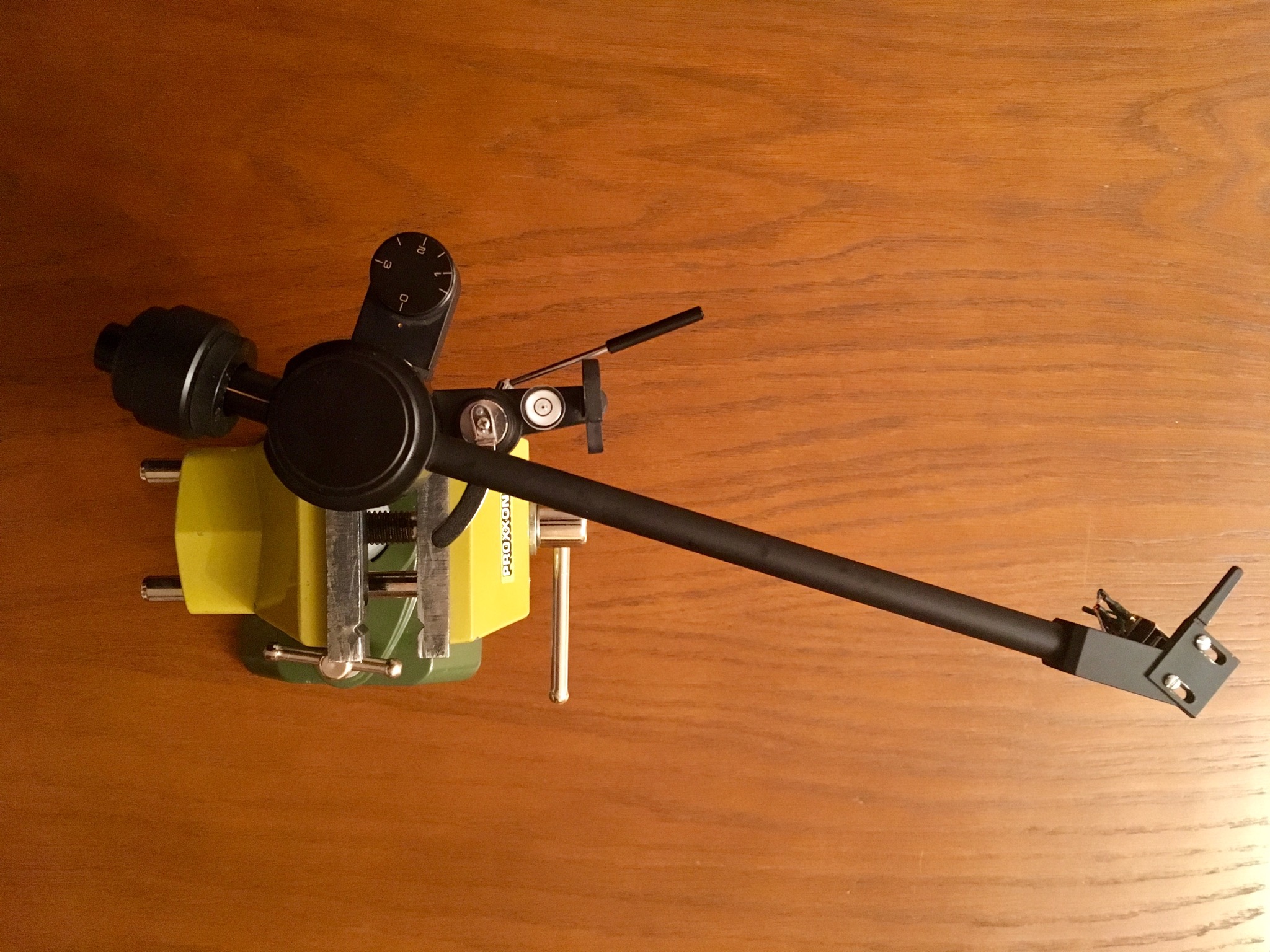Собранный тонарм вел себя идеально и при подключении к моей системе (своим кабелем Van den Hul) фона не производил.
