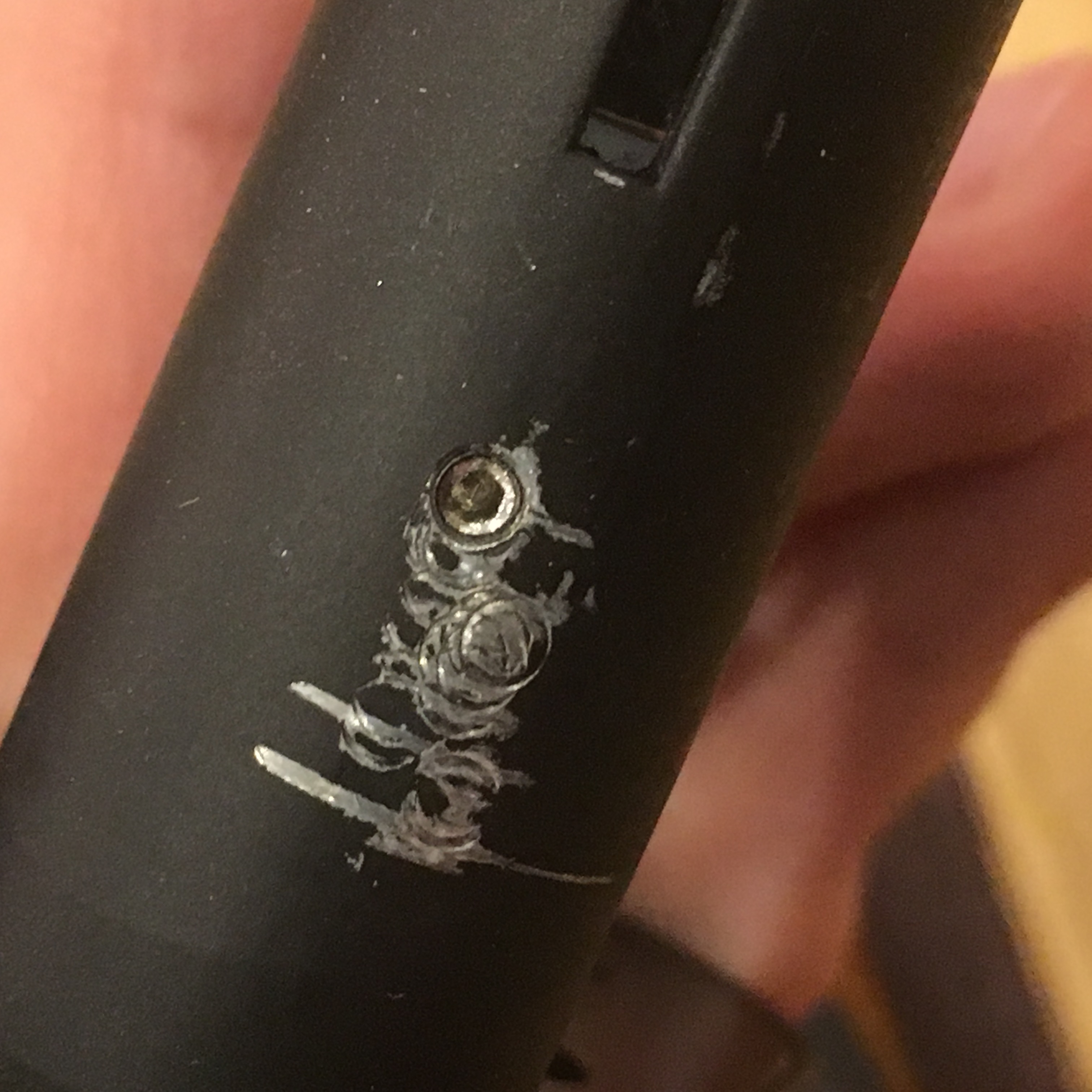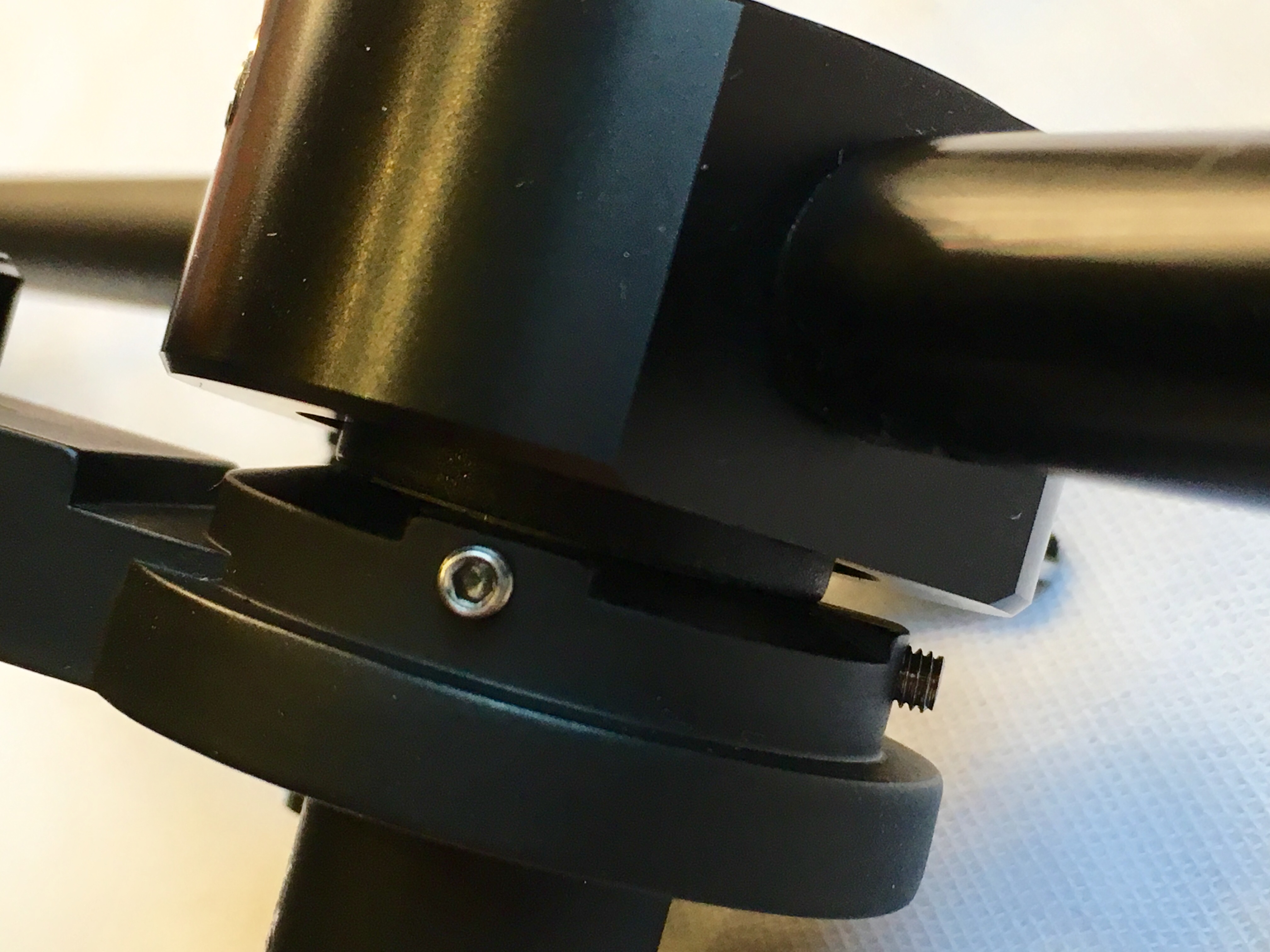 Сразу оговорюсь, при осмотре винтов стало понятно, тонарм до меня разбирали. Причем похоже, откручивали винт даже не фирменным ключом-шестигранником. Сначала я думал, что это следы фиксирующего винта высоты. Но, рассмотрев под лупой сомнения отбросил.