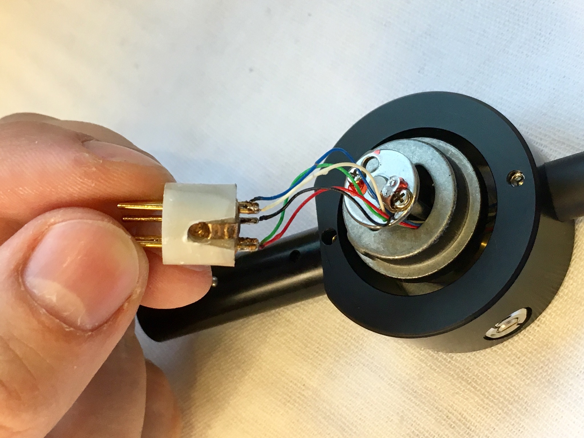 У данного разъема очень хиленький фиксирующий винт. А сам он, чрезмерно плотно (и не до конца!!!) соединяется с ответной частью тонарма. Поэтому не мудрено, что данный разъем обречен на разваливание и внутренний обрыв проводов.