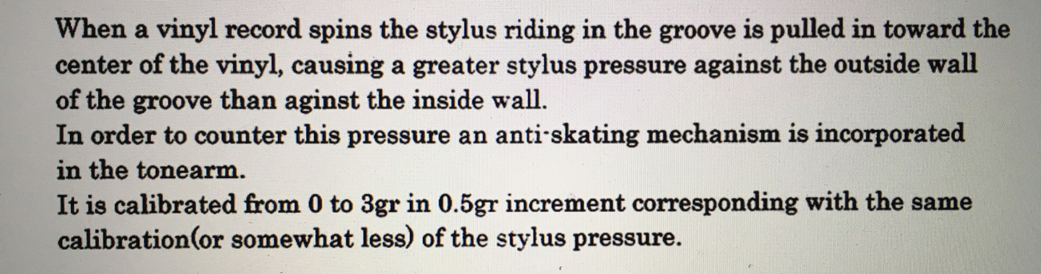 P.S. Во всех инструкциях, что я нашел, на тонармы с подобным устройством антискейтинга, ничего подобного нет. Указано просто - установить согласно показателю прижимной силы или меньше.