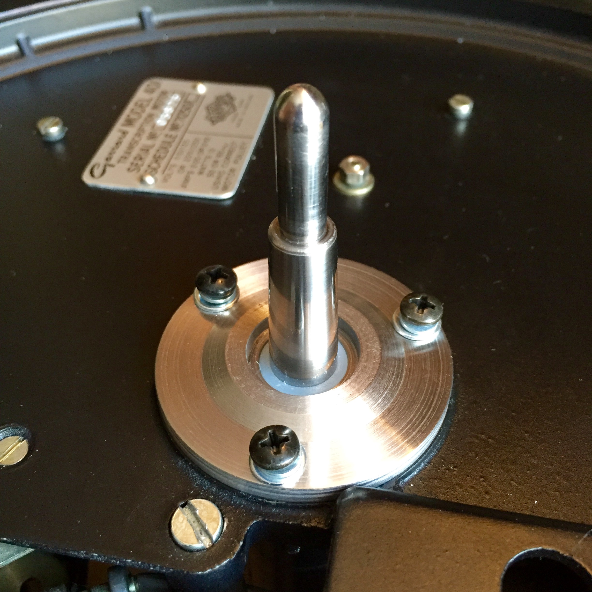Пока не готов приступит к установке шпинделя. Нет смазки. И нужно выбрать свободный день. Чтобы все разобрать (снова снять тонармы и т.п.), установить и тщательно выставить по уровню.