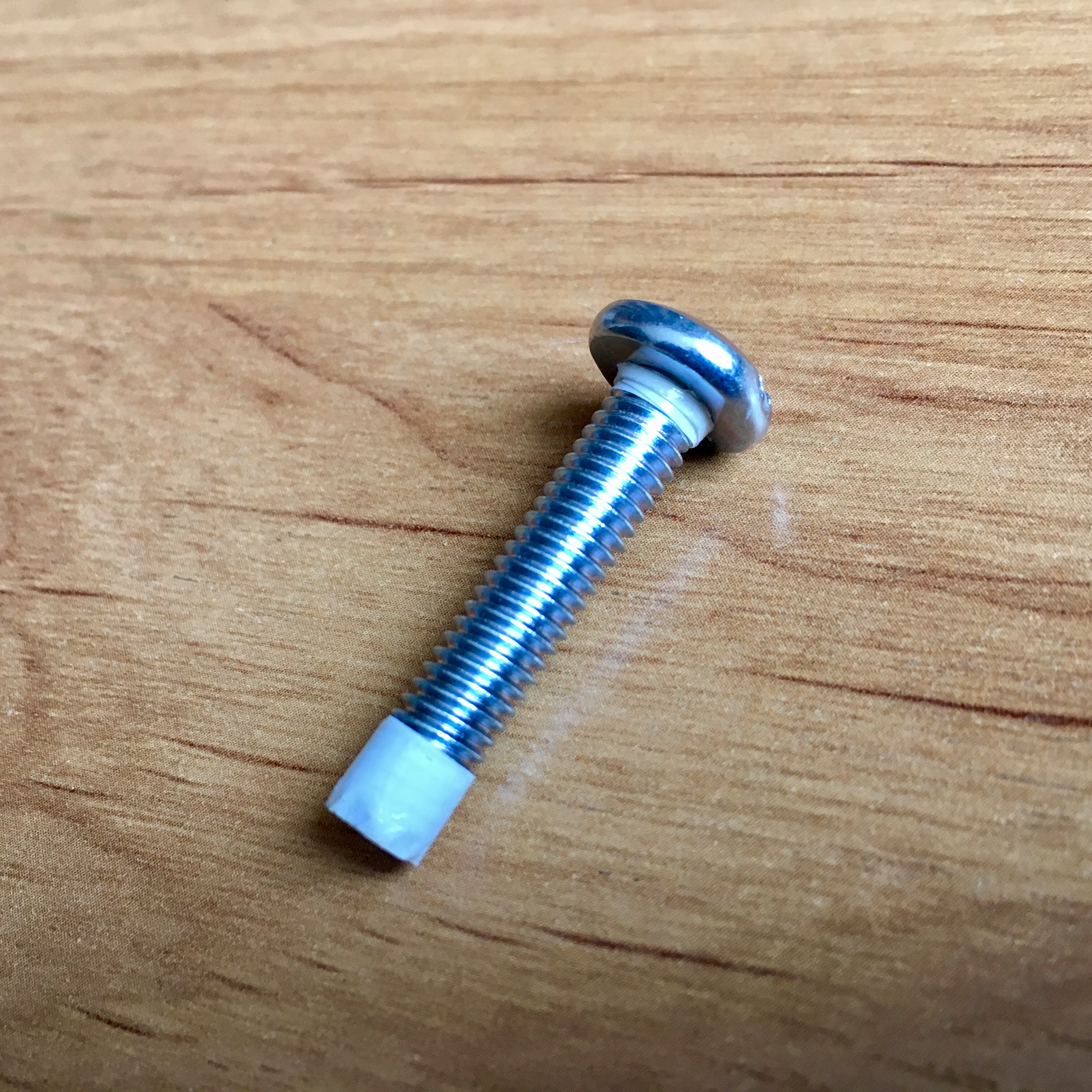 Моя задумка в том, чтобы винт занял все свободное место в трубке. Таким образом вес был расспределен, а не висел на конце хвостовика. И вес нужен такой, чтобы у "кругляша" остался ход для регулировки. Винт сам по себе в трубке держится. Однако липкая лента образует тонкую фиксирующую прослойку, которая демпфирует возможные вибрации и "стук" металла о металл.