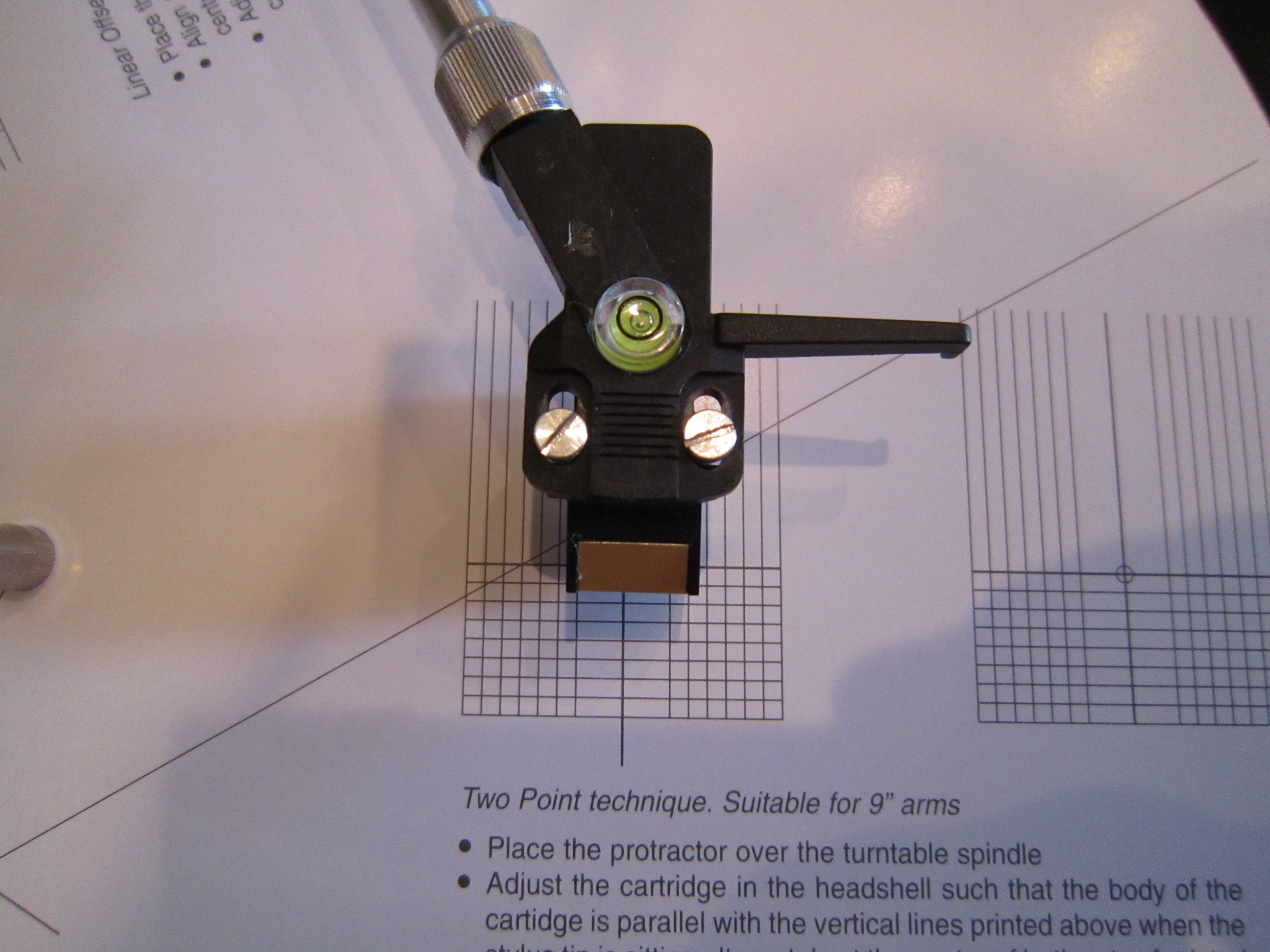 Ставишь протрактор дыркой для установки картриджа на шпиндель и проверяешь/устанавливаешь картридж на шелле.