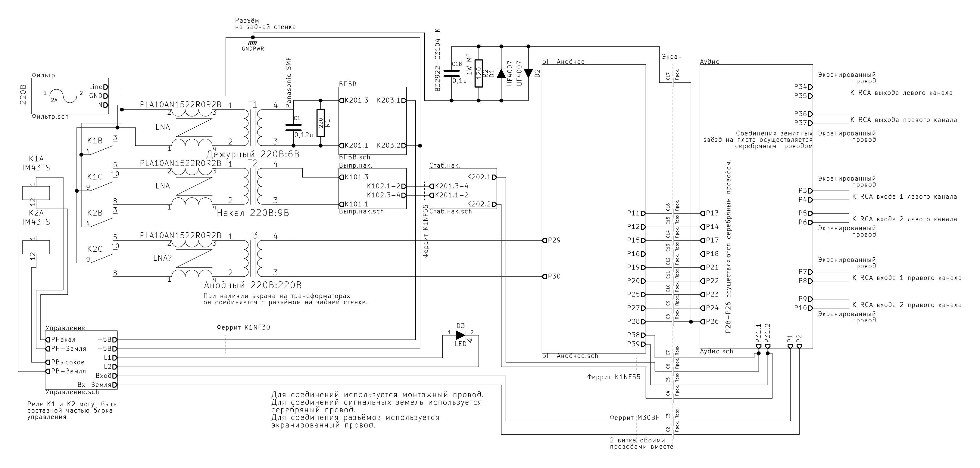 10. Трансформатор - тороидальный!!! Три напряжения: высокое, накал, 5В.