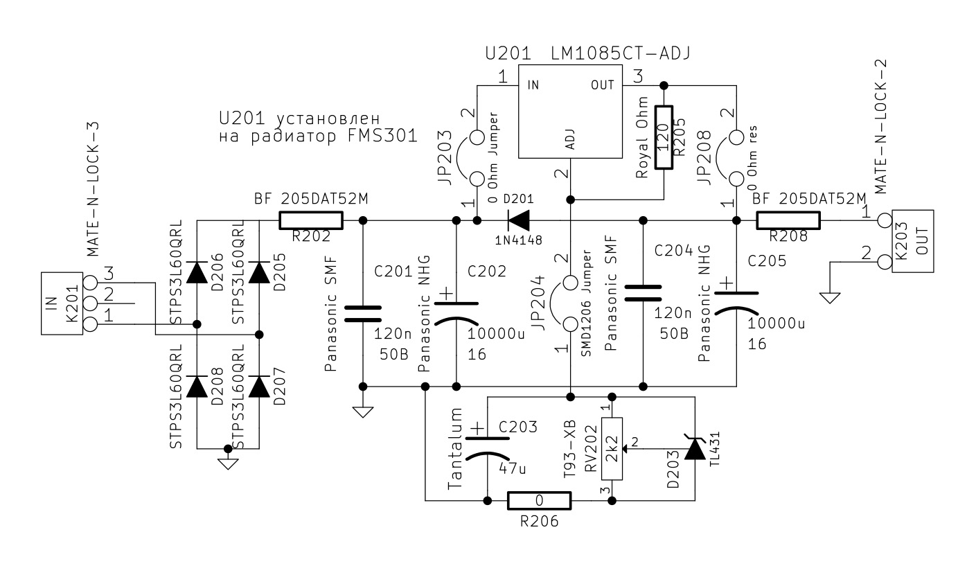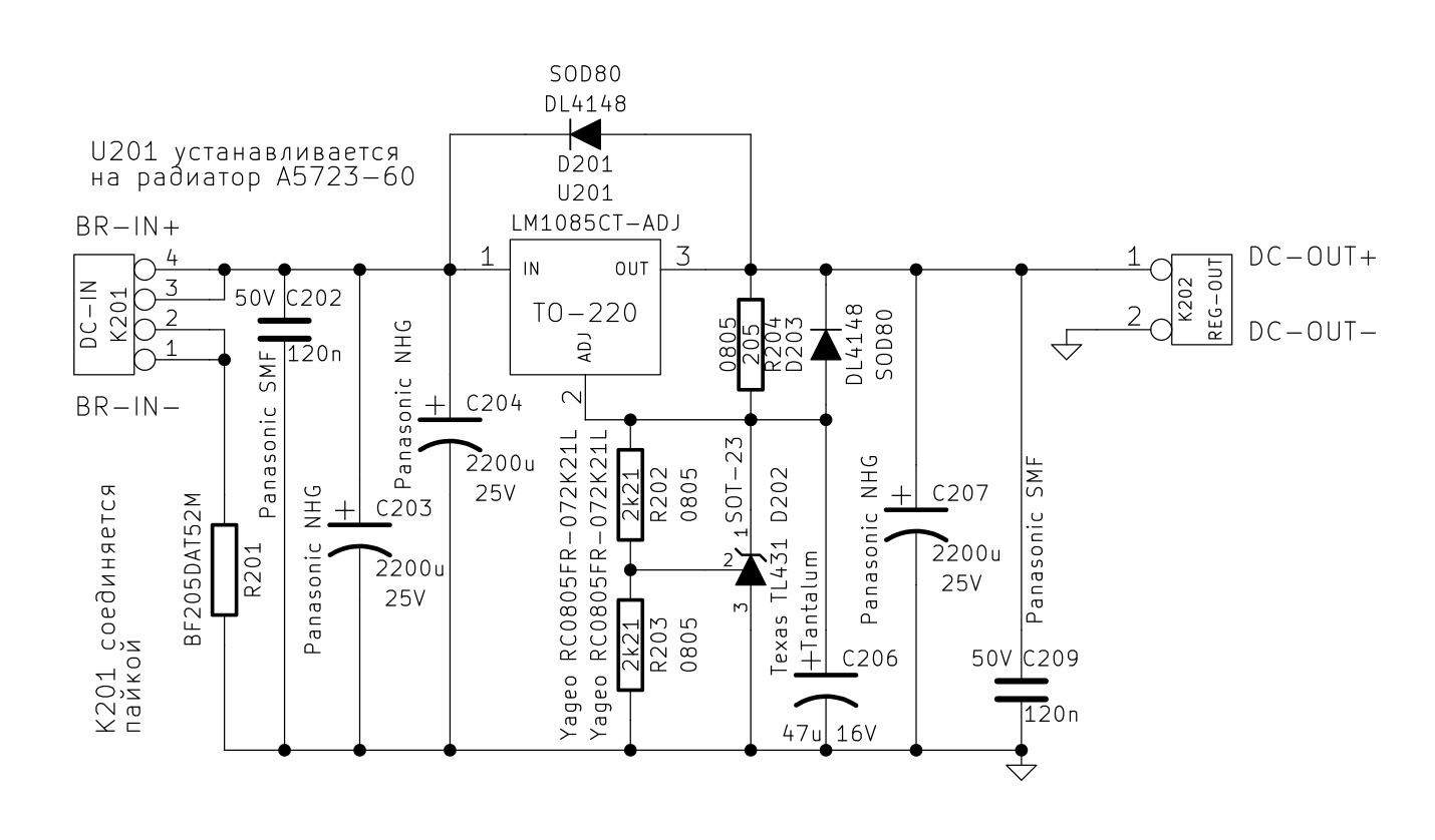 4. Питание накала: имеющийся линейный двухплатный регулятор (с использованием LM1085CT - регулируемый), с TL431 в хвосте для уменьшения импеданса регулирования + шунтирование танталовым конденсатором; напряжение - 6,3В.