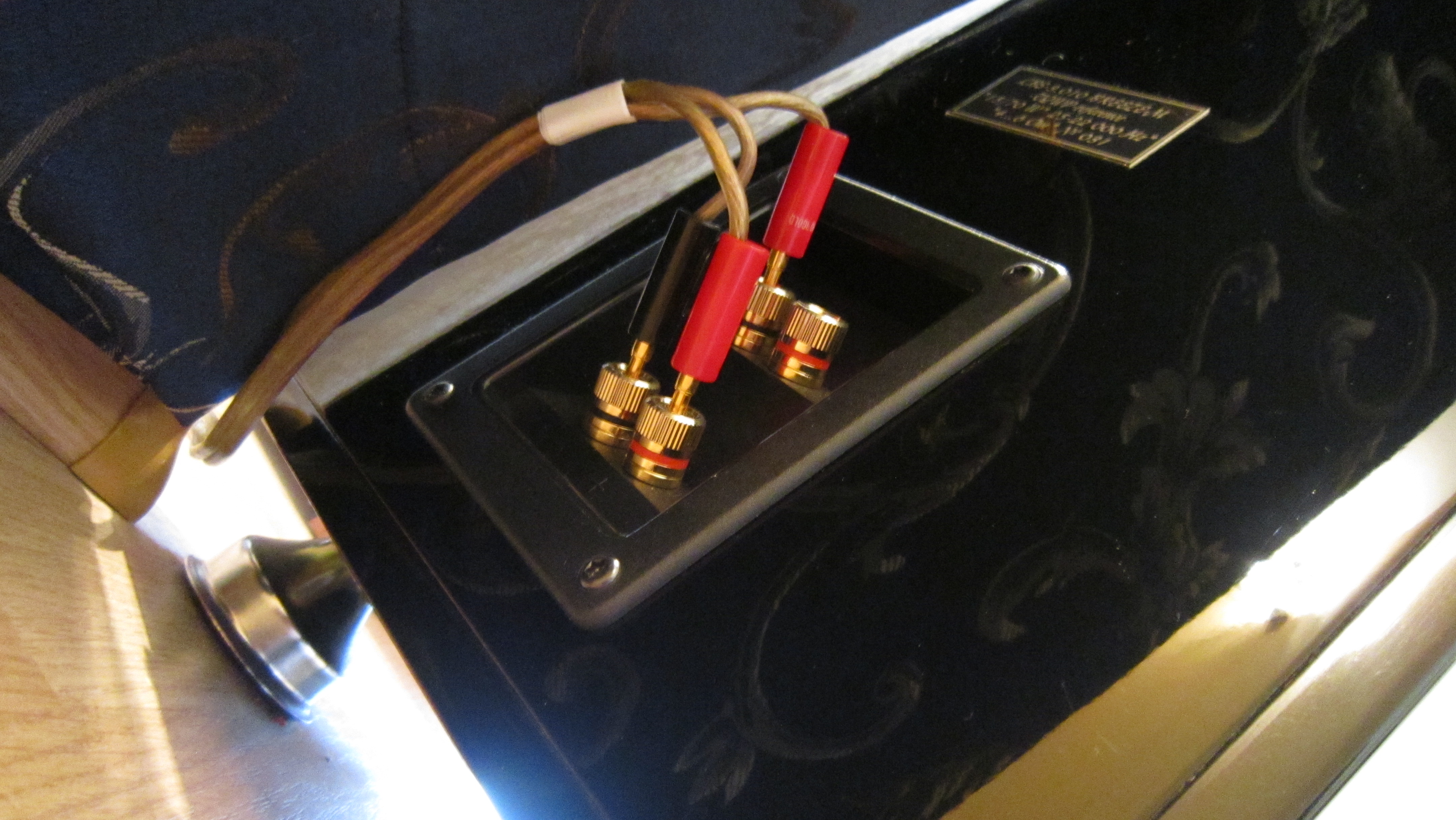 Пока я не хочу на кабели раскошеливаться. Хоть и надо-то всего 2 по 1,70. Думаю, что моноблоки позволят максимально сократить длину (и влияние) акустических кабелей. Надеюсь, что получится сантиметров по 50! Клеммы у АС расположены внизу, что очень грамотно и симпатично (не люблю висячих веревок).