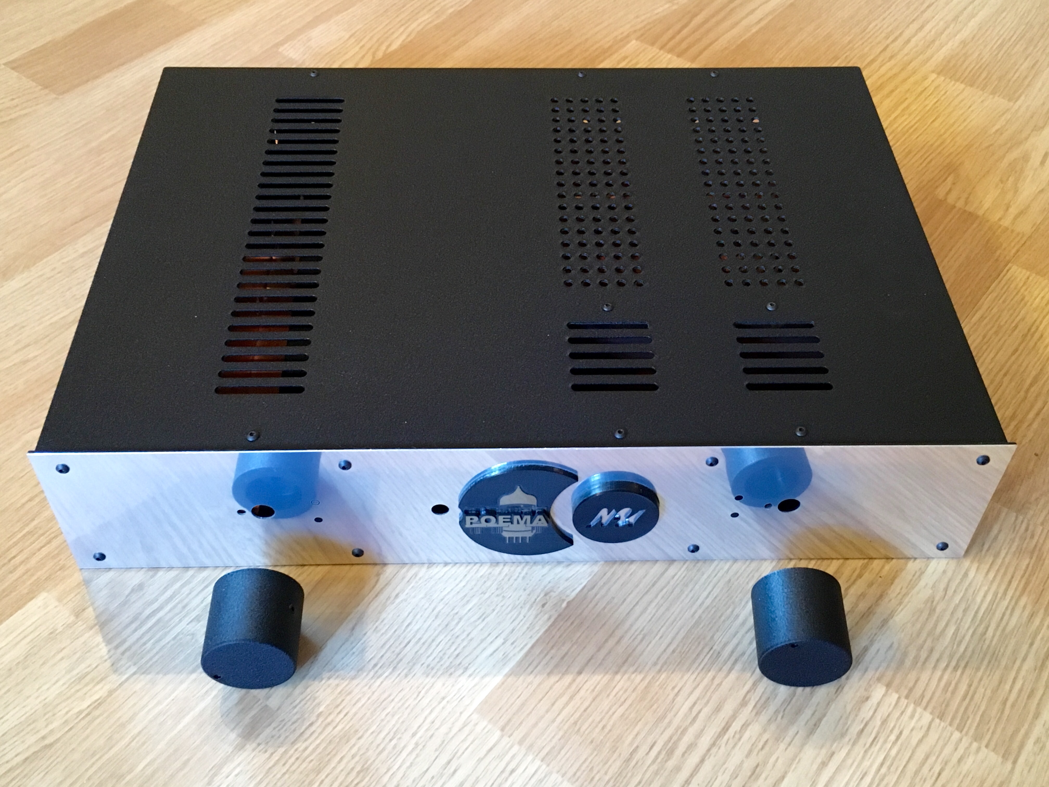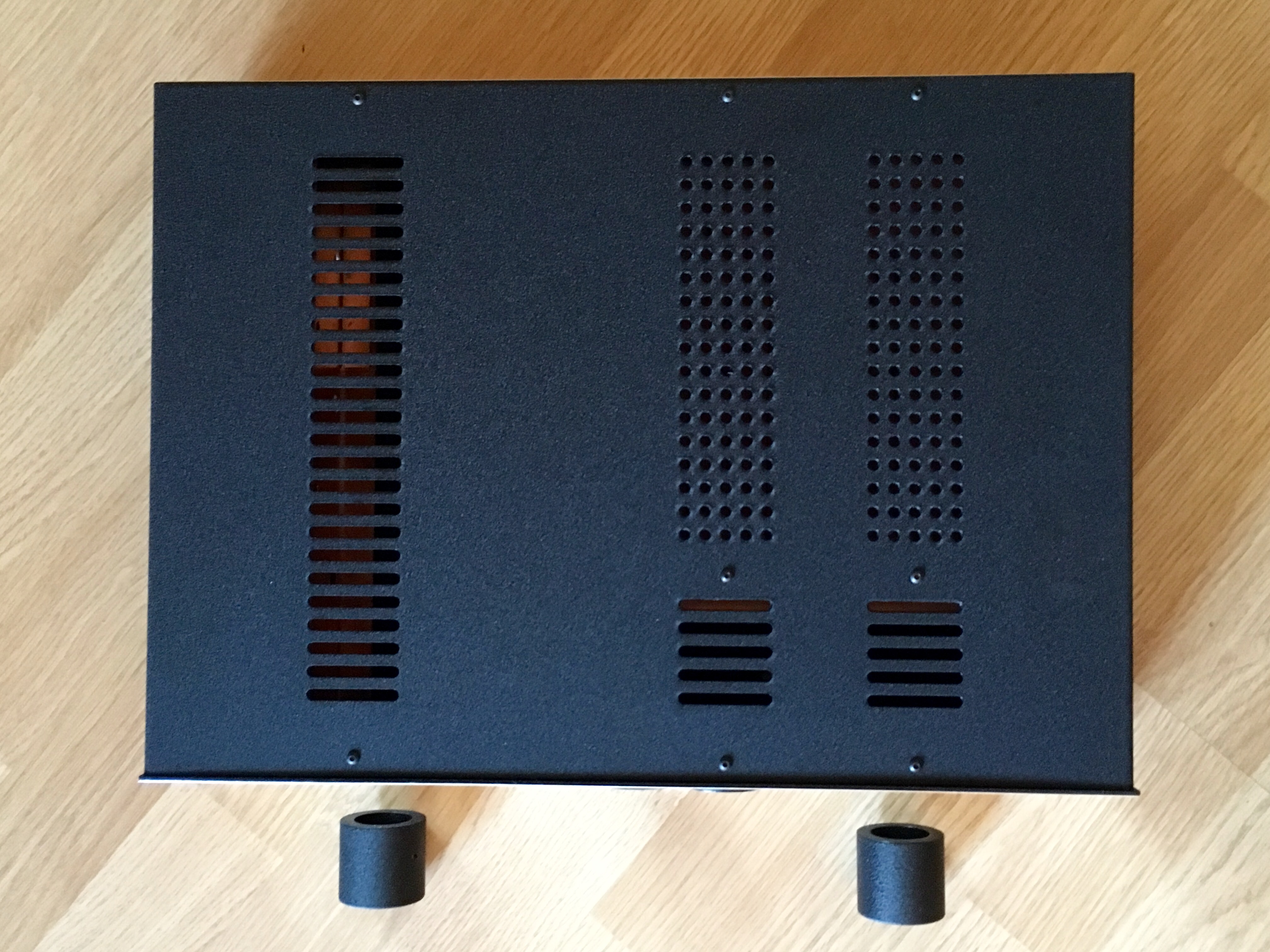 - Сколол краску на фронте вокруг одного из технологических винтов, учавствовавших в порошковой покраске, когда его откручивал. Он прикипел и иначе не получилось. Сначала хотел эти винты вовсе не трогать, они были аккуратные черные в вет корпуса. Но, побоялся, что со временем краска совсем задубеет и отвернуть уже не получится. А так, если бы сколы были более значительными - я бы перекрасил. Но, получилось не сильно страшно. Я подретушировал это место черным лаком. На моем корпусе тоже были такие сколы, но их закрыла алюминиевая шильда. Думаю, у Вас тоже предстоит какая-то отделка в перспективе и все закроется. А если, делать фрезерованную алюминиевую фронтальную панель, эту пластину можно и не применять вовсе.