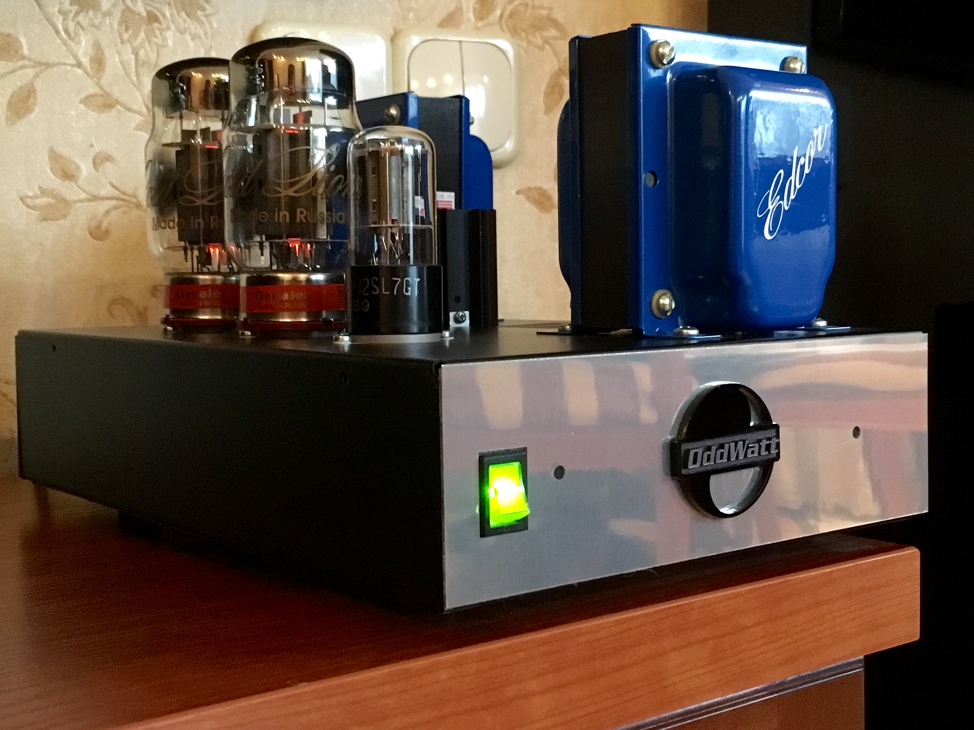 Вот и приходит снова мысль, а не купить ли неокрашенные крышки с целью покрытия зеркальным хромом. Логотип "Edcor" нанести шелкографией (можно синим шрифтом). И по верхней панели положить зеркальную пластину. На всю поверхность, под лампы и под трансформаторы.