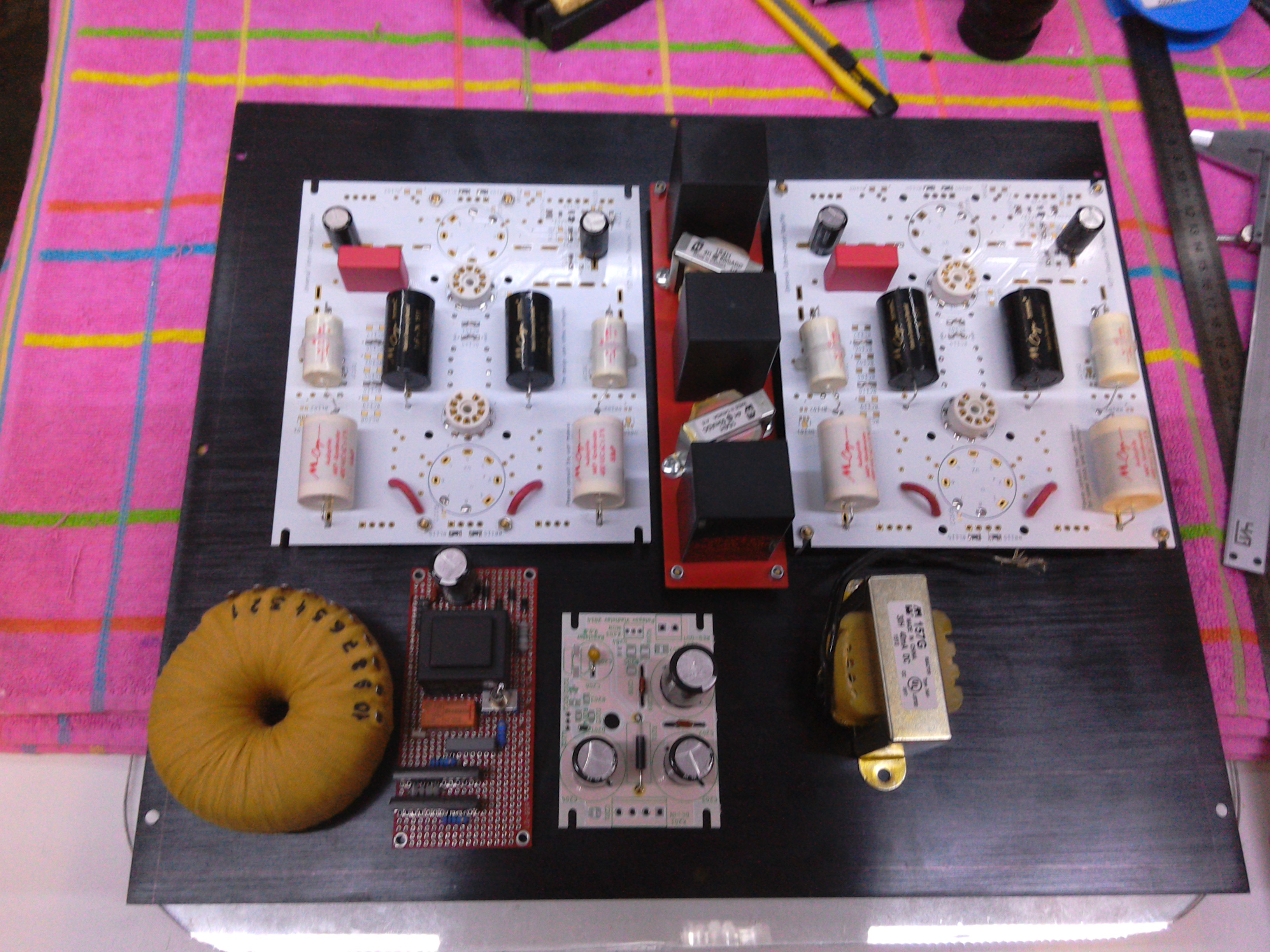 У нас очень много места пропадает на передней стенке. Грубо: всю включалку, управлялку, питание всего этого - я бы вынес на переднюю стенку. Платы поставил строго посередине. Справа от них собрал бы накал (выпрямление + стабилизация). Слева - высокое (трансформатор, кенотрон, дроссель).