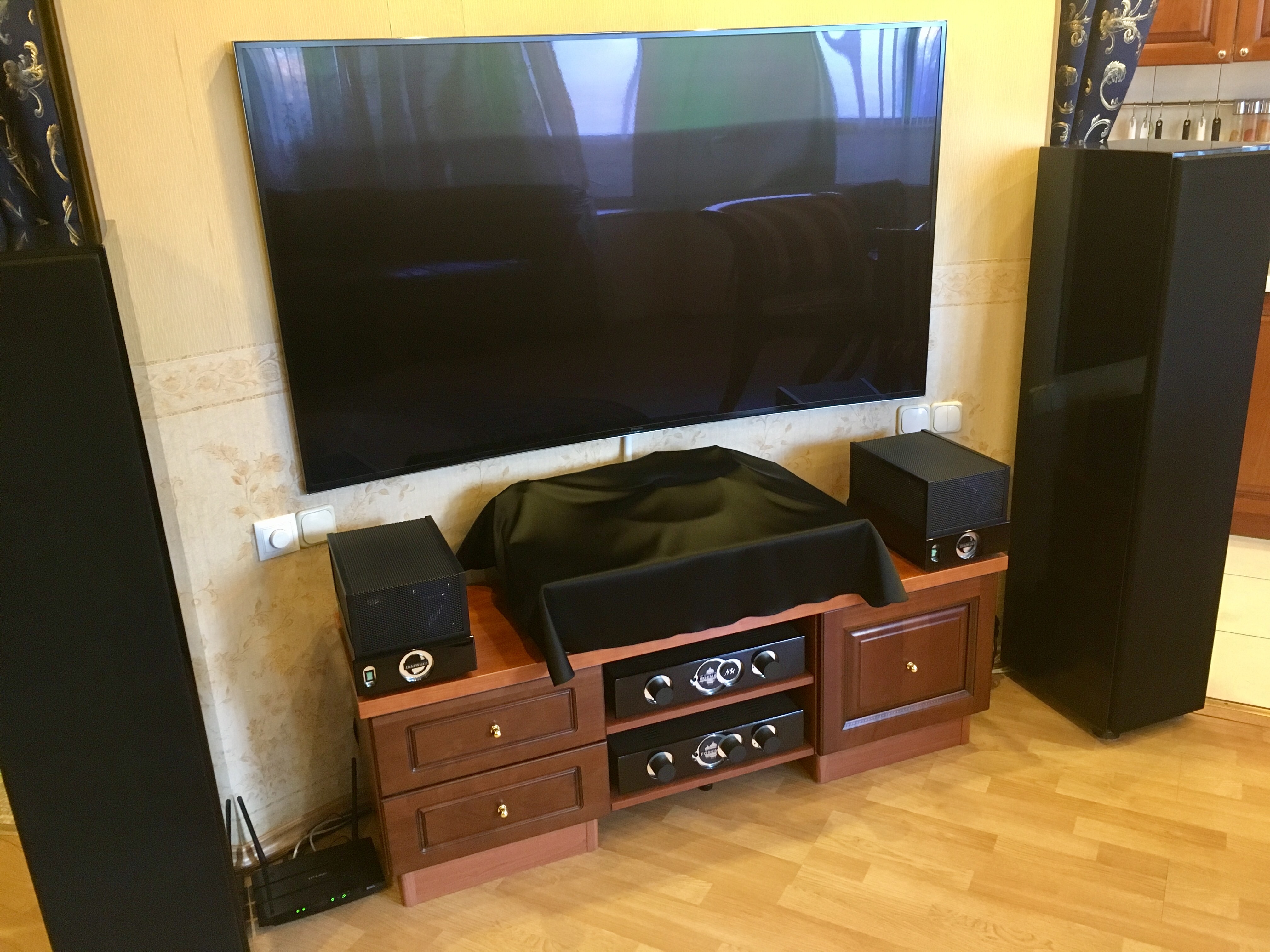 "Доведен до ума" плинт. Теперь он реально достоин названия "рояльный лак" и полностью соответствует стилю оформления моей акустики.