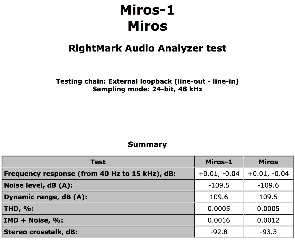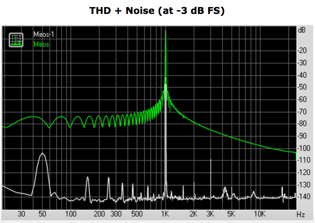 Я провел тест платы заново. Результаты не особенно разнятся, но на графике те же странности. Возможно, что-то закралось в файл.Алаев Ян писал(а):График THD+Noice странный, уровень Miros находится выше уровня фонокорректора, такого не должно бы быть, очень похоже на какой-то переходный процесс.
