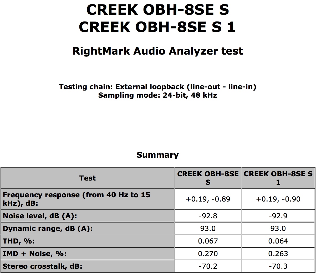 CREEK OBH-8SE S 1 24-bit, 48 kHz