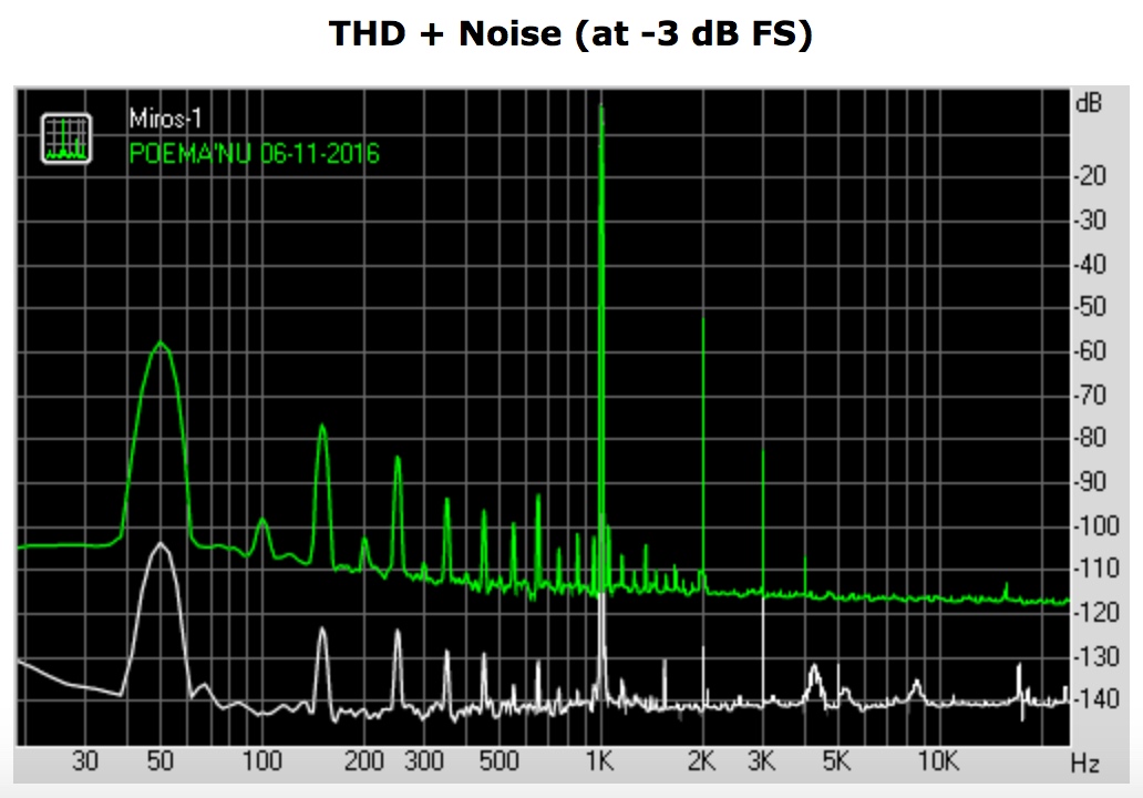 Я провел тест платы заново. Результаты не особенно разнятся, но на графике те же странности. Возможно, что-то закралось в файл.Алаев Ян писал(а):График THD+Noice странный, уровень Miros находится выше уровня фонокорректора, такого не должно бы быть, очень похоже на какой-то переходный процесс.