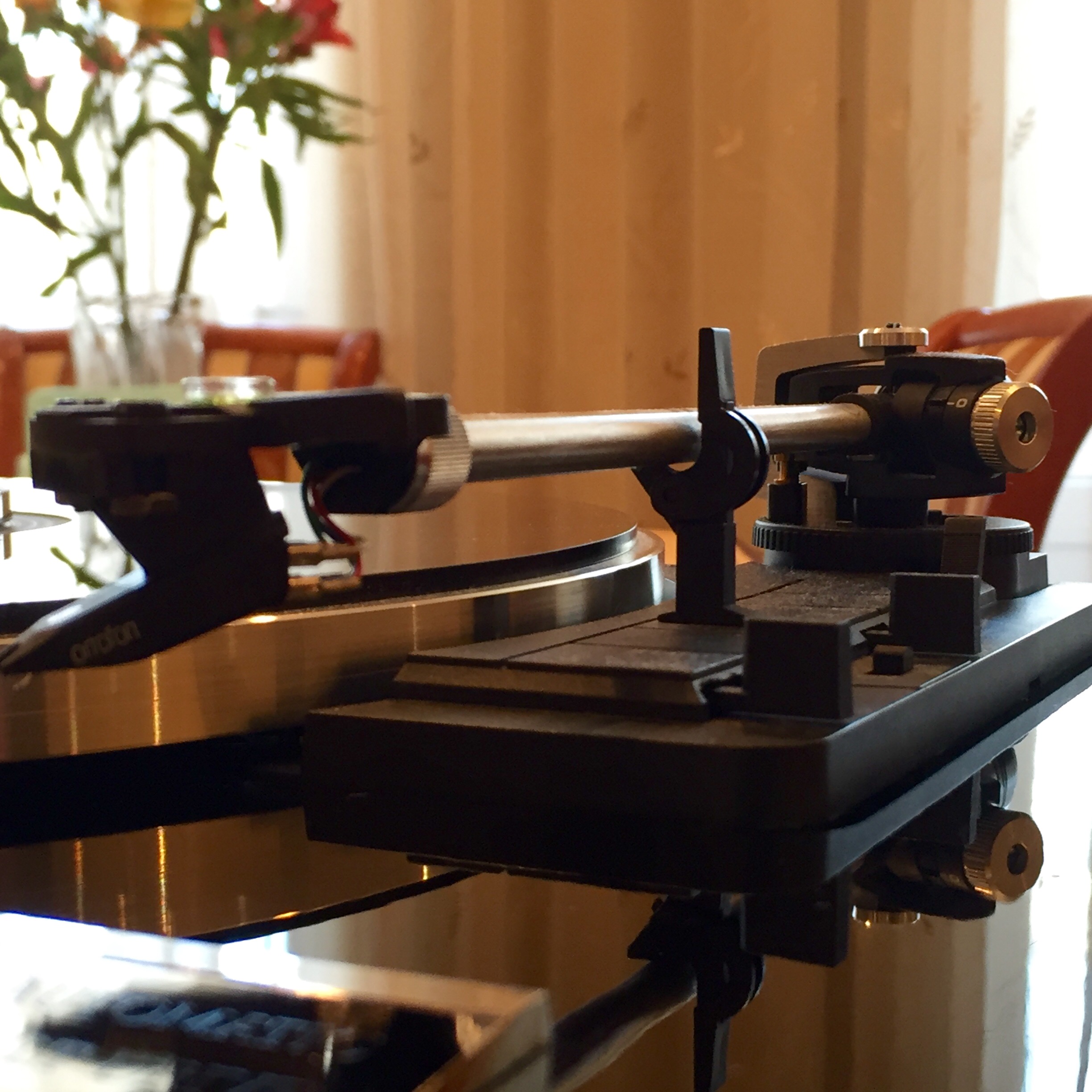 Настройку следует проводить на проигрывателе, который установлен на горизонтальной плоскости. Ножки проигрывателя не предусматривают регулировку уровня. А все рабочие элементы весьма подвижны (закреплены на подпружиненном, антивибрационном шасси). Поэтому за константу горизонтальности этого проигрывателя я предлагаю принять именно поверхность полки, на которой он стоит. Если в дальнейшем будете регулировать остальные горизонты (я загонялся по этим моментам в данной теме), все равно "пляшите" от этого.