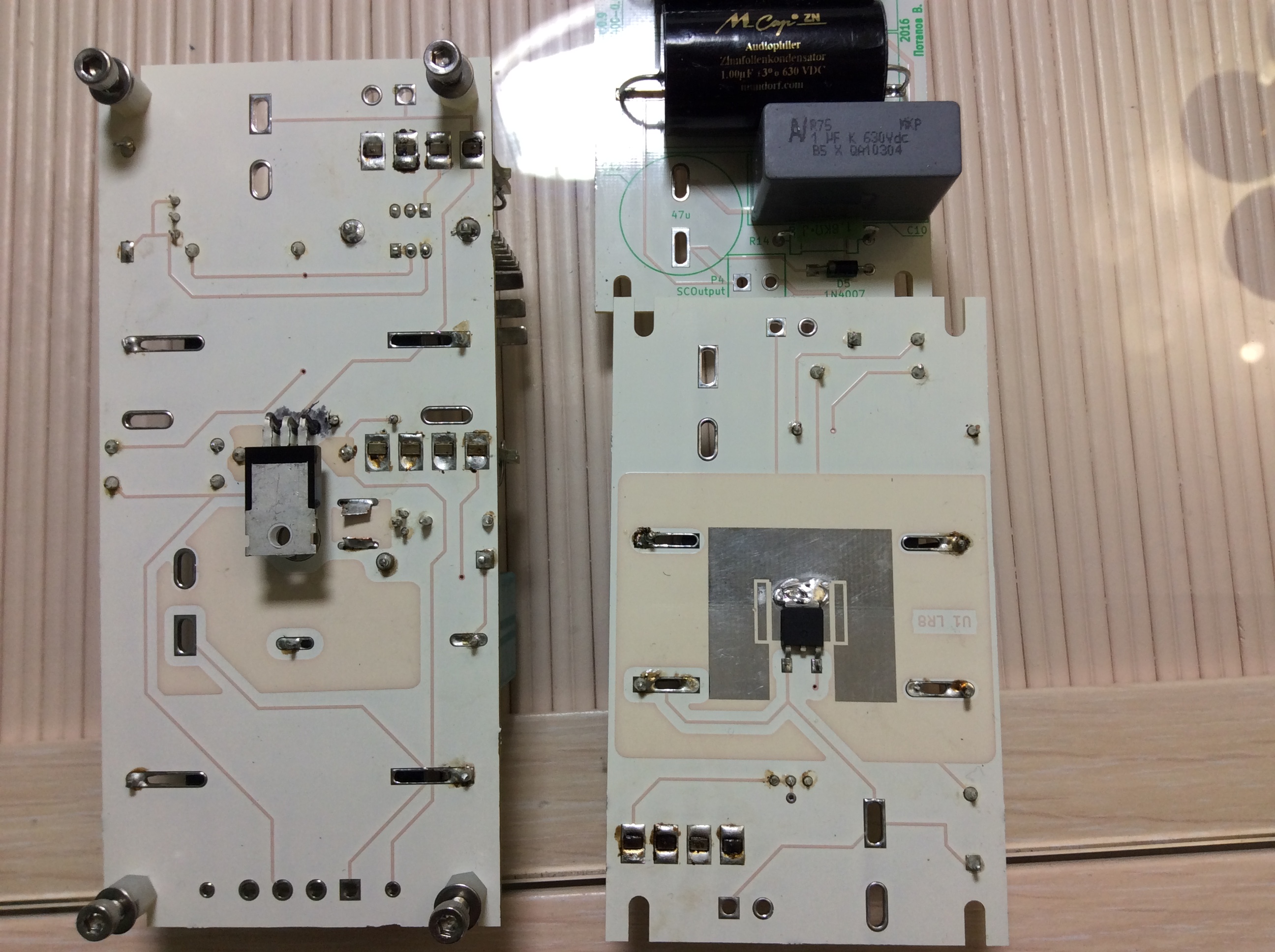 Регулирующие элементы стоят с нижней стороны плат.