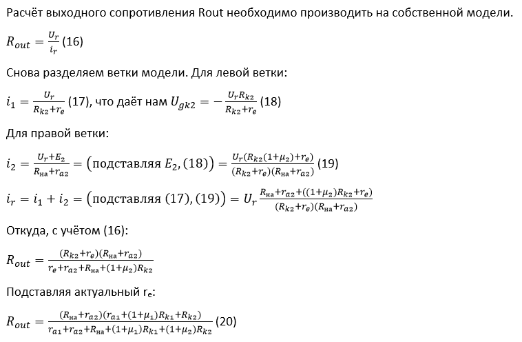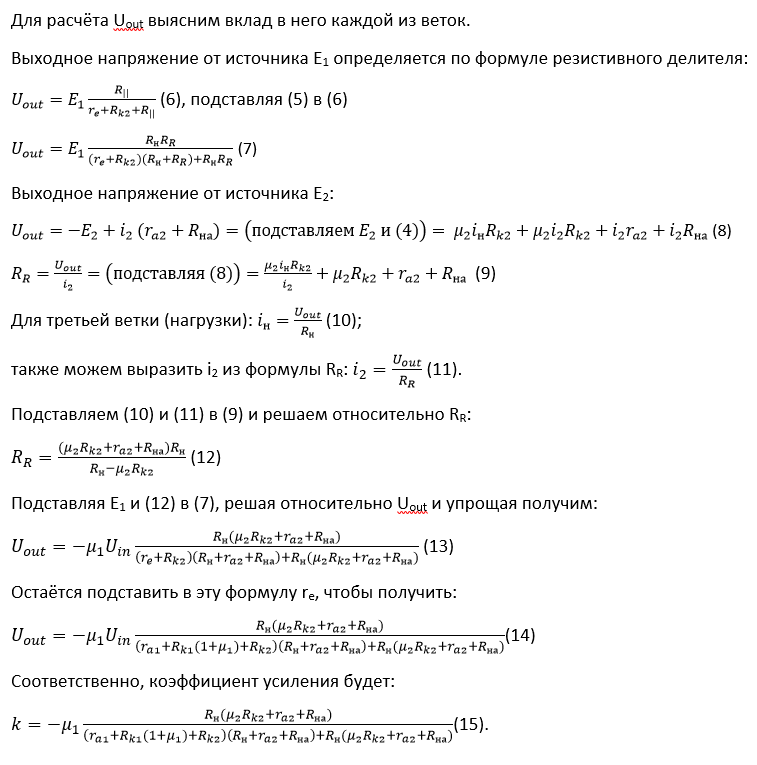Расчёт, который использовал Евгений, включает в себя элементы выбора рабочей точки и проверки работоспособности получившегося решения, что по большому счёту значительно усложняет рассуждения. Однако, я благодарен Евгению за то, что в результате его манипуляций должен получиться практический "выход", который можно реально использовать в своих схемах.