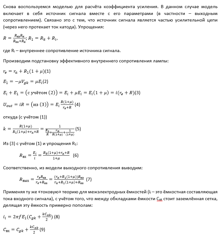 Допустим, последний расчет я производил в условиях 50 вольт на сетку. (155-50-4=(примерно)100В на лампе; актуальное напряжение сетка катод по ВАХ =-2В; сопротивление в катодной цепи = 8,7кОм; импеданс цепи =