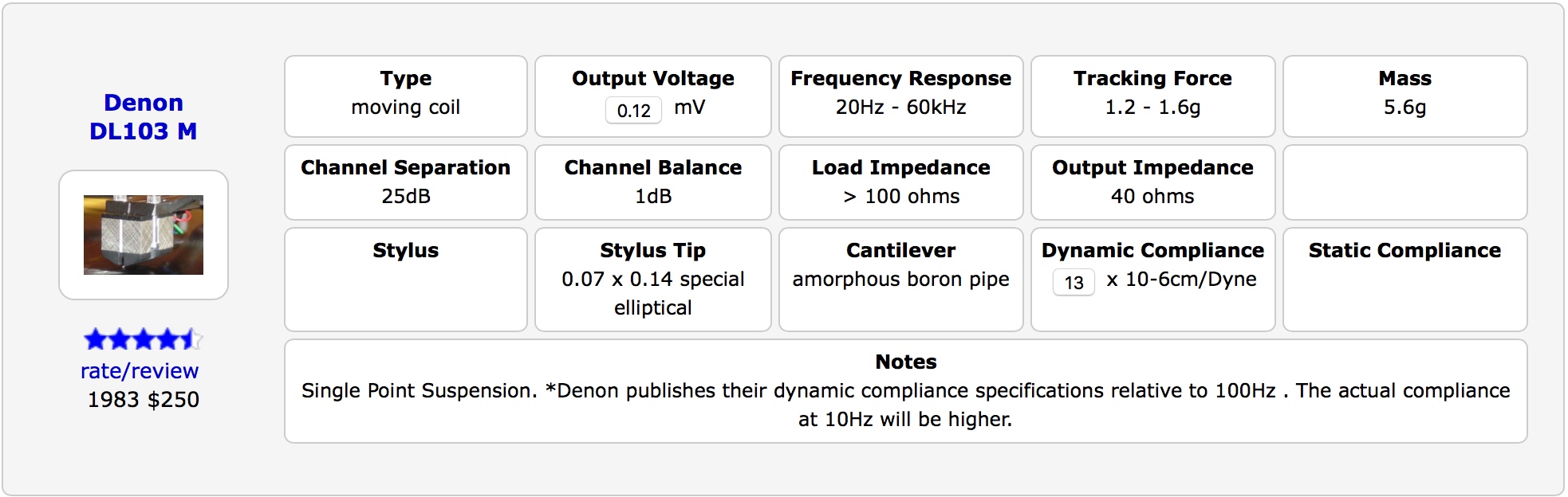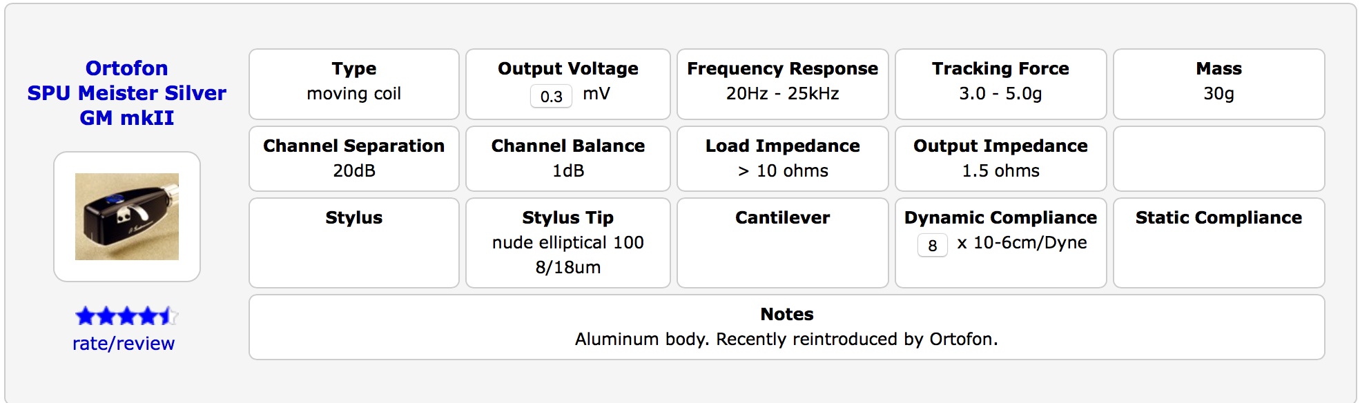 На сегодня видны две крайности по этому параметру - Ortofon SPU (1,5-3 Ом) и Denon DL 103 (35-40 Ом).