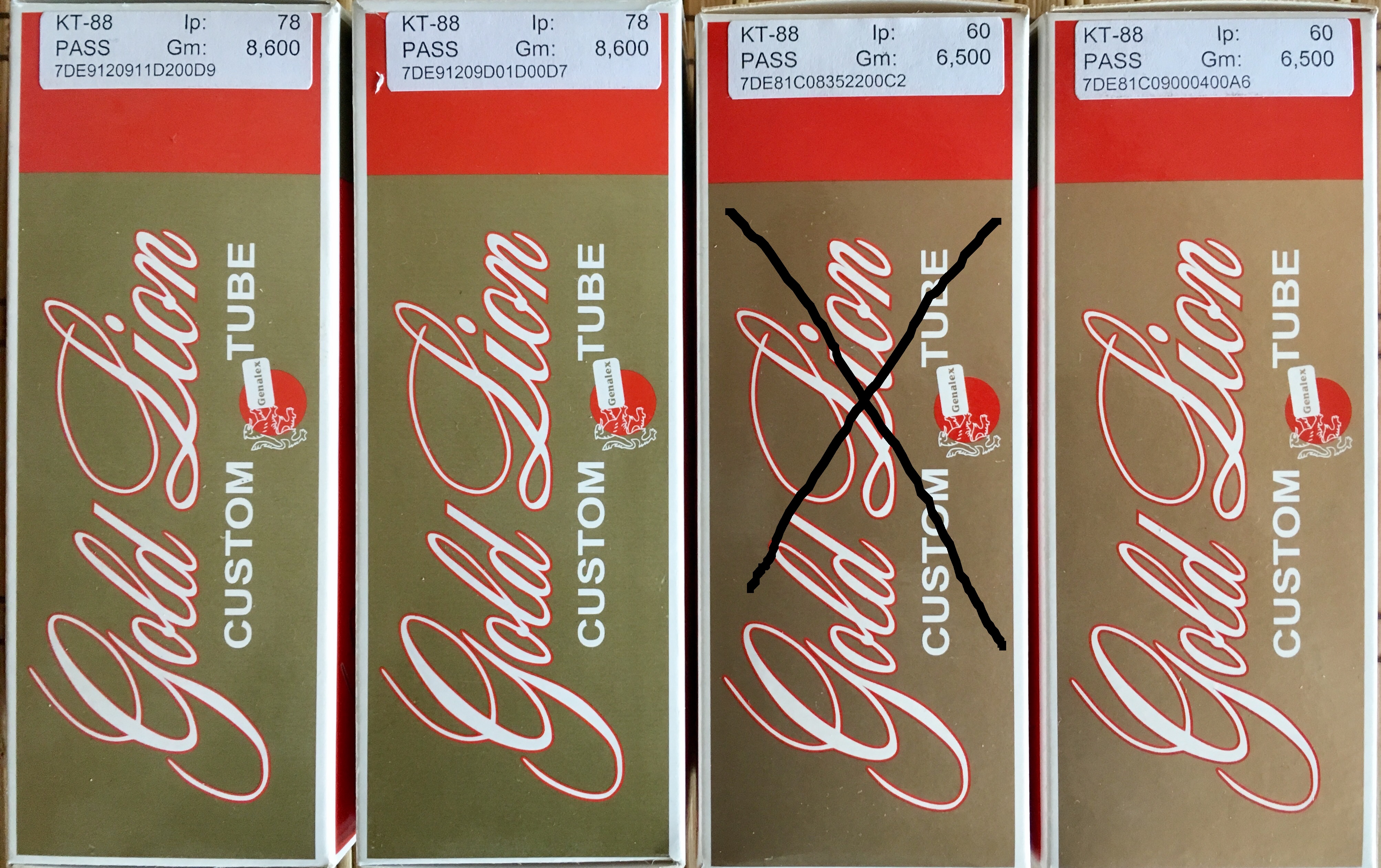 poty писал(а):Если не ошибаюсь, у Яна есть КТ-88 не Gold Lion - можно сравнить, насколько они от "золотых" отличаются!