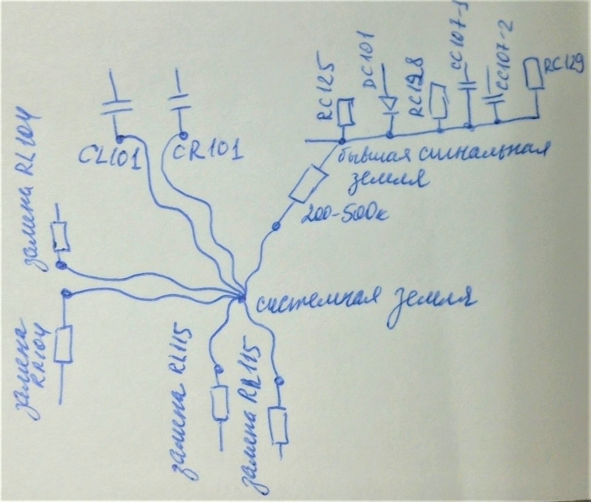 Также на звезду приходят 2 конденсатора сх101, вторая часть которых сидит на В-.