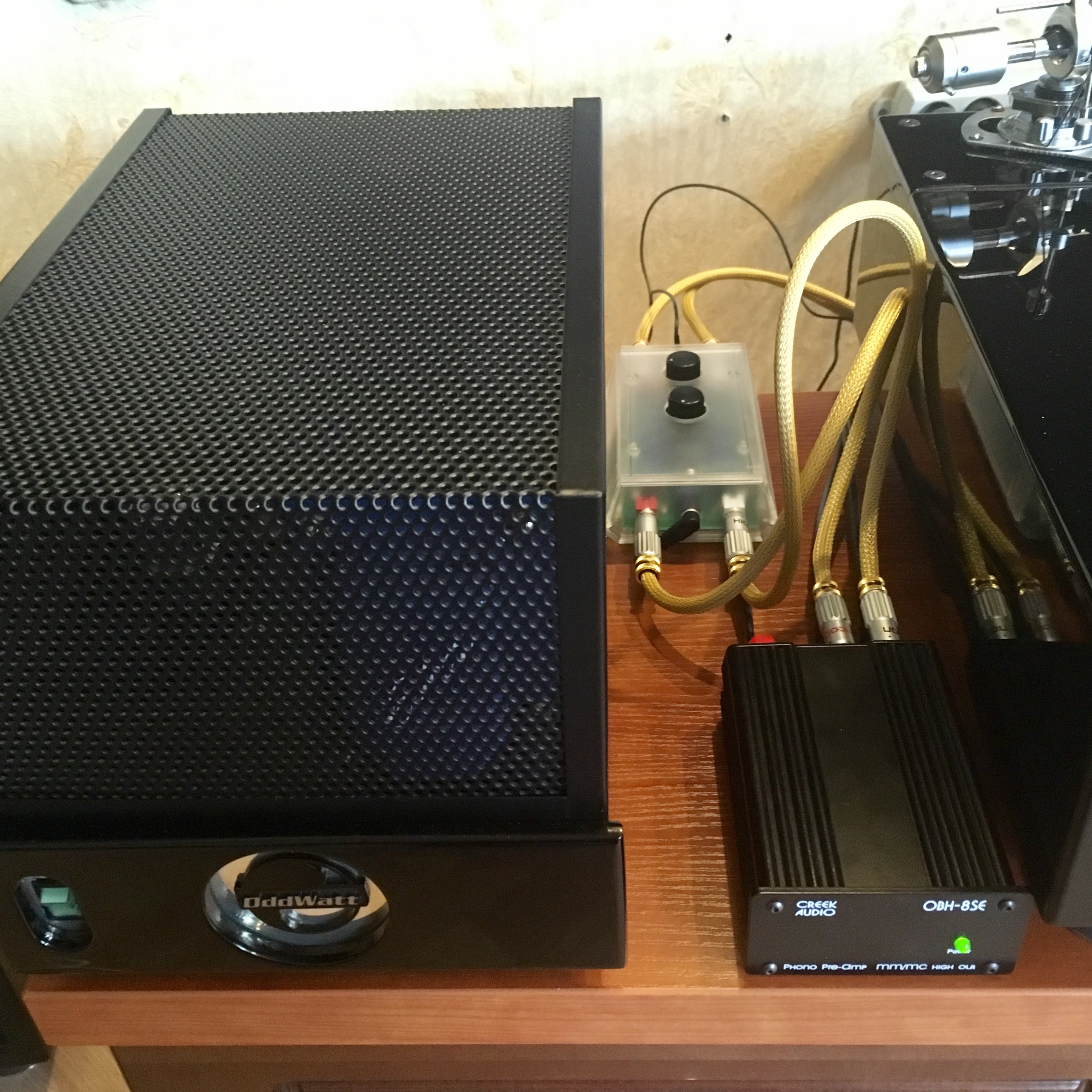 2) Piccolo подключен со стороны корректора, в т.ч. земля. Включено его питание. Но, тонарм от него отключен, в т.ч. земля. Т.е. его вход полностью свободен.
