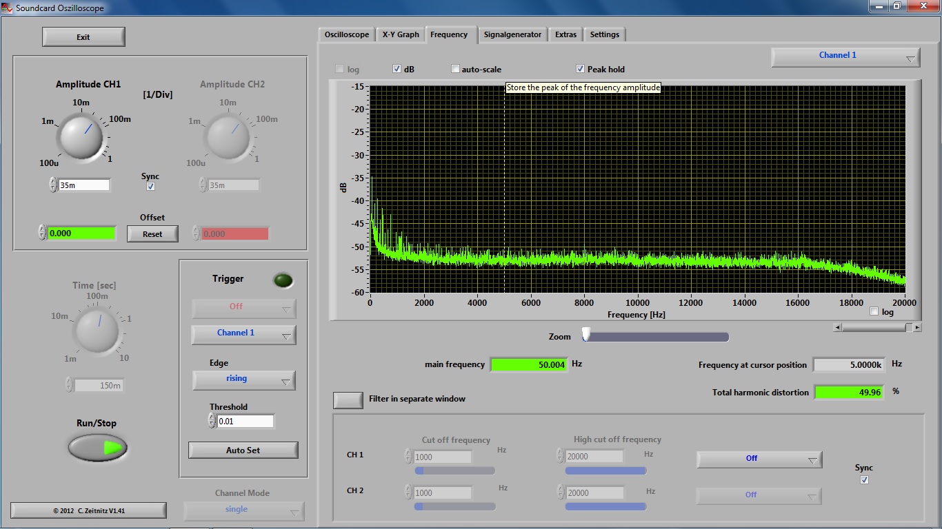 Анализируя "в общем", я понимаю, что возникает достаточно широкополосный шум до 3-4кГц с резко выделяющимися 50Гц наводками. А что это наводки - я теперь не сомневаюсь (частота не меняется). Другой вопрос - как от этого избавиться? И почему Хагерман ничего не предпринял по этому поводу? Я попытаюсь написать всё на английском, не вдаваясь в подробности.